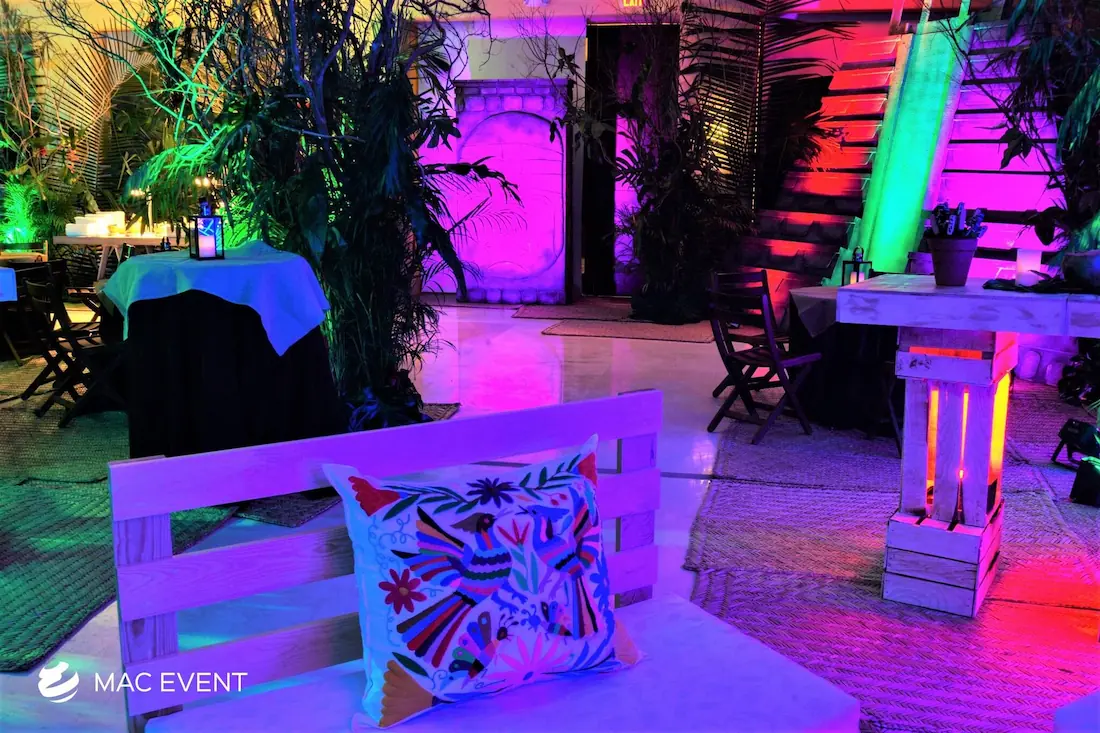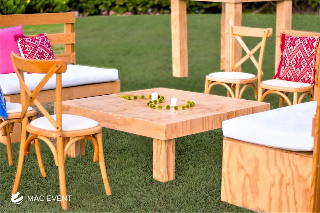 The natural lounge is perfect for creating a relaxed and elegant atmosphere at weddings, parties, and corporate events in Bucerias. With its organic materials, soft tones, and simple design, this event lounge rental blends beautifully with tropical, beach, or garden settings. Ideal for outdoor receptions or boho-inspired gatherings, the natural lounge offers comfort and style while highlighting the beauty of the surroundings. Renting natural lounges in Bucerias allows you to design warm, inviting spaces where guests can unwind and connect. For effortless elegance inspired by nature, the natural lounge is a perfect choice for any celebration.