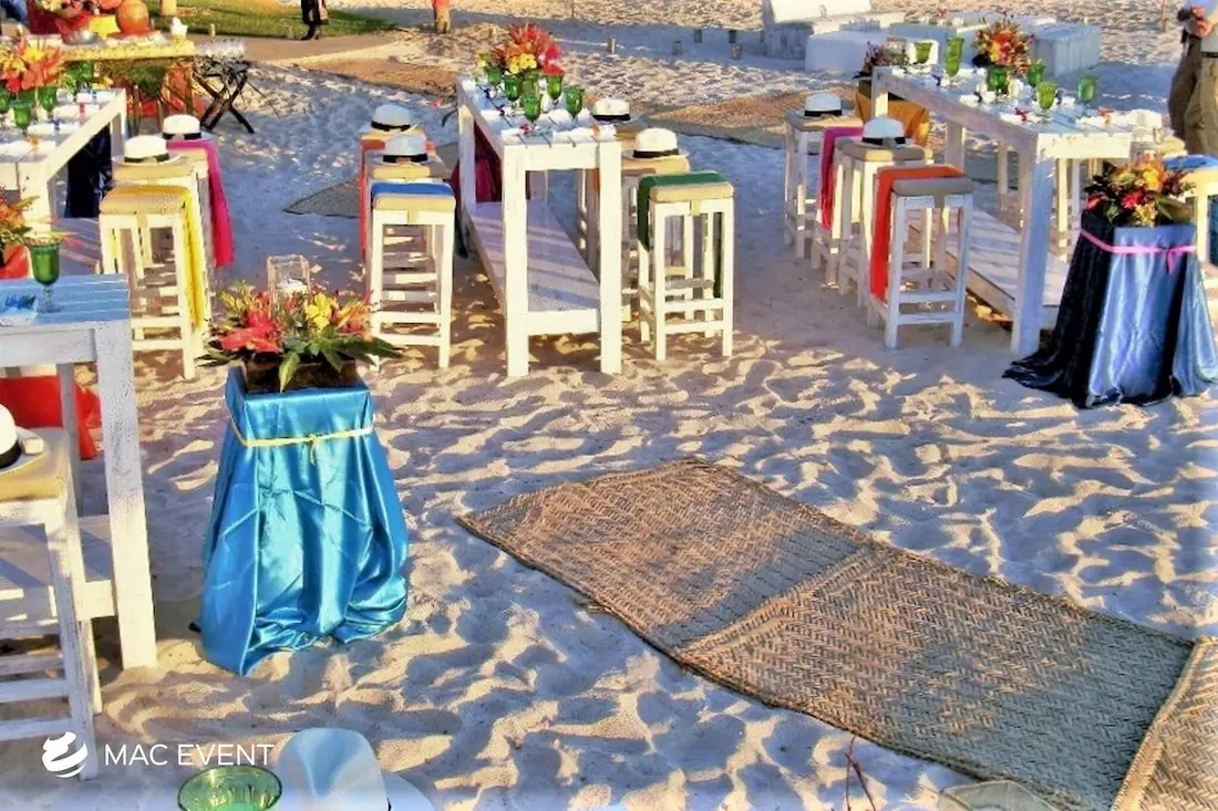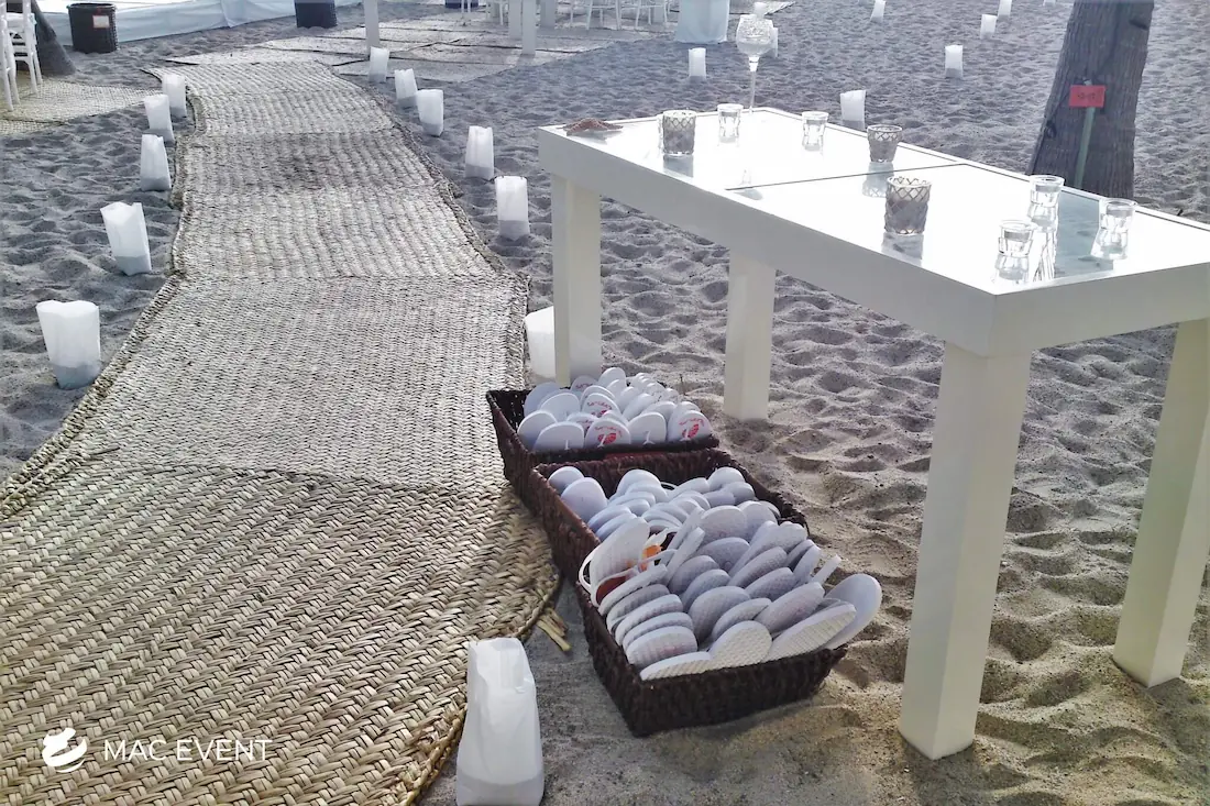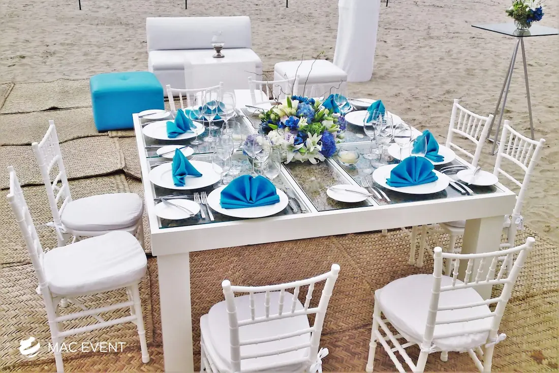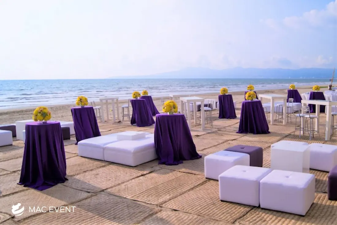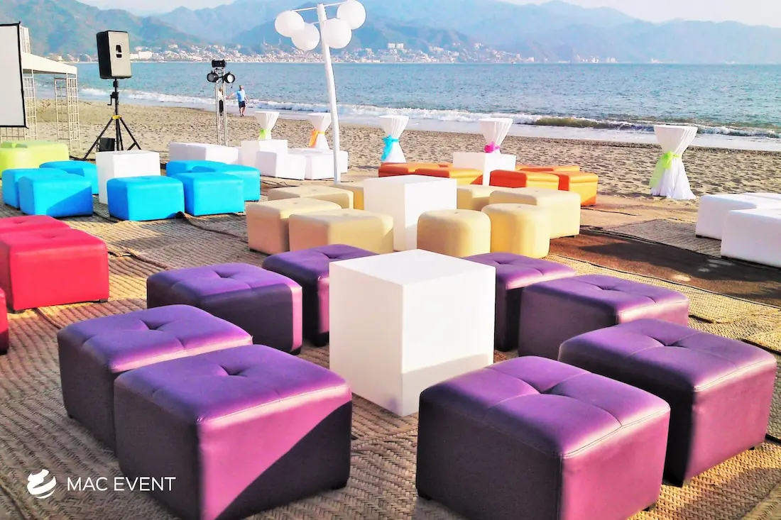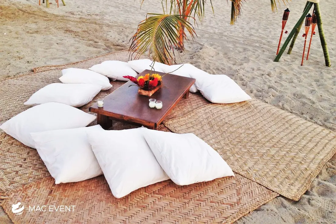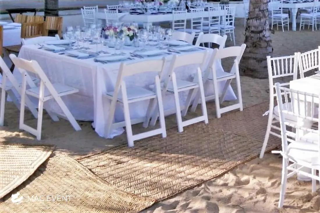 The petate mat adds a touch of authentic Mexican tradition to weddings, beach parties, and corporate events in Bucerias. Woven from natural palm fibers, this event décor rental brings texture, warmth, and cultural charm to your setup. Perfect for picnic lounges, rustic themes, or boho-inspired spaces, the petate mat serves as a stylish base for floor seating, decorative accents, or display areas. Renting petate mats in Bucerias allows you to create organic and inviting environments that reflect local craftsmanship. For a natural and culturally rich detail, the petate mat is a beautiful addition to any event.