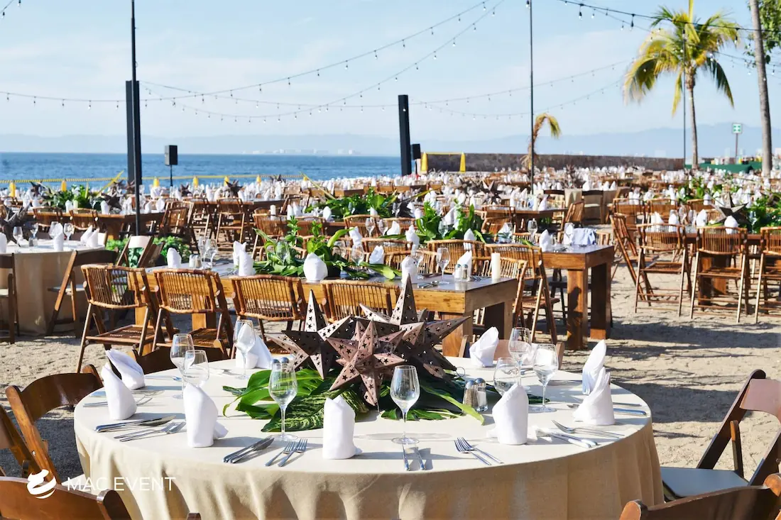 The round table is a timeless choice for weddings, parties, and corporate events in Bucerias. Its circular design encourages conversation and connection, making every guest feel included and comfortable. Ideal for receptions, dinners, and elegant gatherings, this event table rental offers a balanced and polished look that complements any décor style. Renting round tables in Bucerias provides versatility in layout and easy coordination with chairs, linens, and centerpieces. For a classic and inviting setup that enhances both beauty and functionality, the round table is the perfect choice for any celebration.