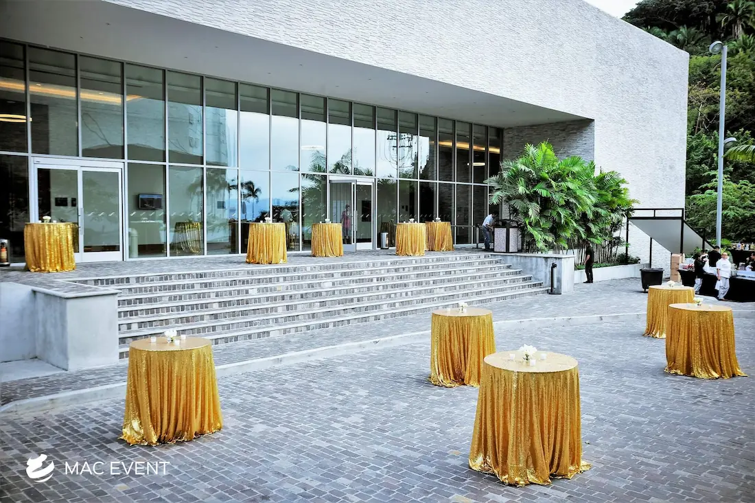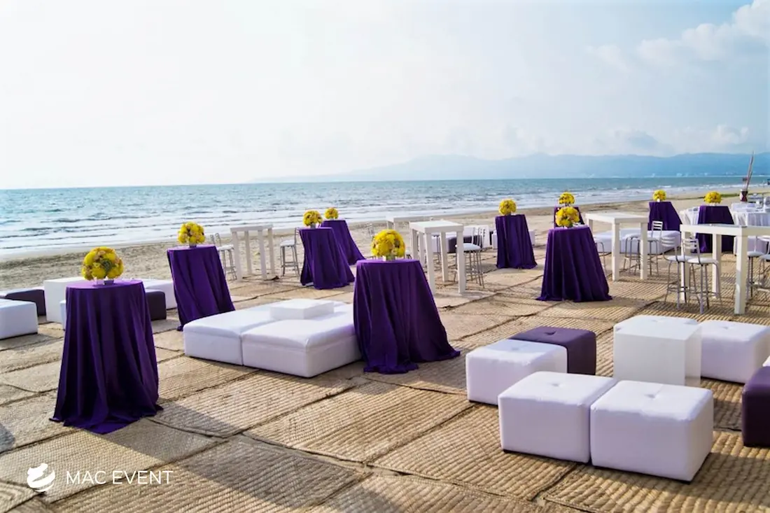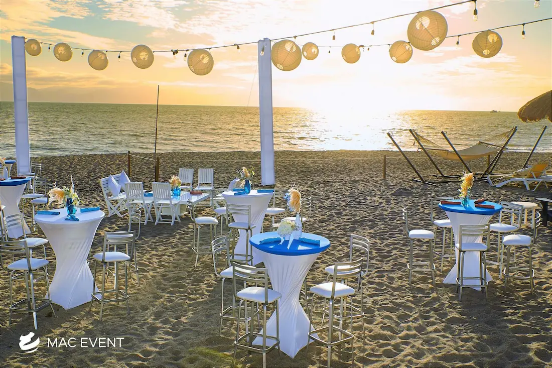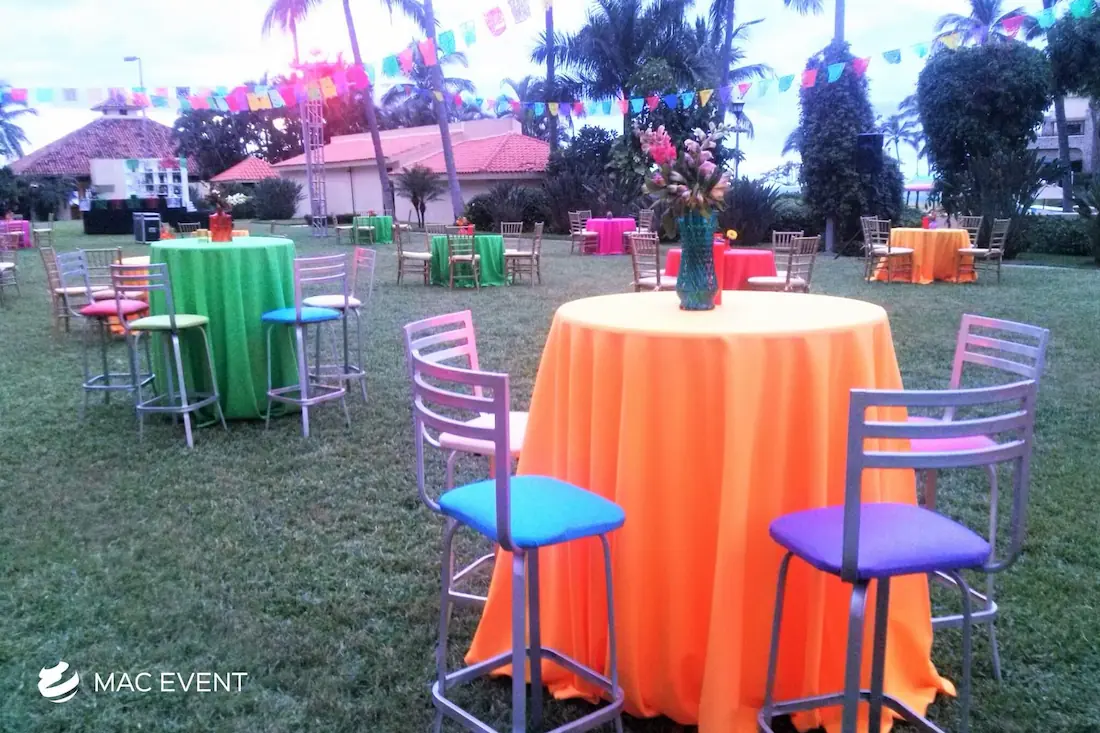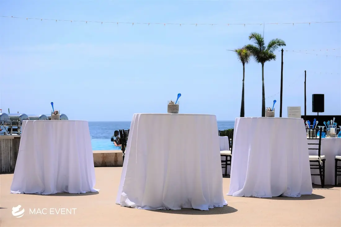The classic cocktail table adds elegance and versatility to weddings, parties, and corporate events in Bucerias. With its clean lines and timeless design, this event table rental fits beautifully in both indoor and outdoor spaces, creating the perfect area for guests to enjoy drinks and conversation. Ideal for cocktail hours, receptions, and networking events, the classic cocktail table offers a polished look that complements any décor style. Renting classic cocktail tables in Bucerias ensures a cohesive and stylish setup that balances sophistication with practicality, making your event both inviting and memorable.