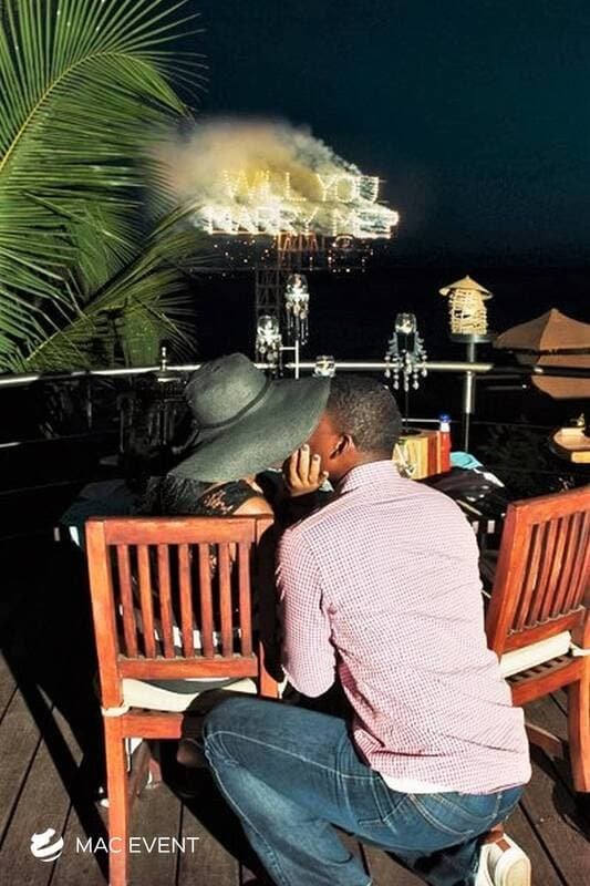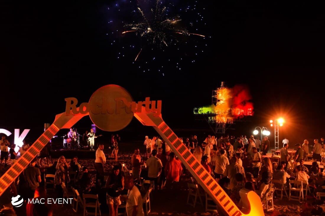 The pyro-lettering adds a dramatic and personalized touch to weddings, parties, and corporate events in Bucerias. Designed with firework-style effects, this event display rental illuminates names, initials, or messages in bright, sparkling flames that create an unforgettable visual moment. Perfect for grand entrances, proposals, or finales, pyro-lettering combines art and celebration in one breathtaking display. Renting pyro-lettering in Bucerias ensures professional setup, safety, and flawless execution. For a unique and spectacular way to showcase your message, the pyro-lettering is a stunning addition to any event.