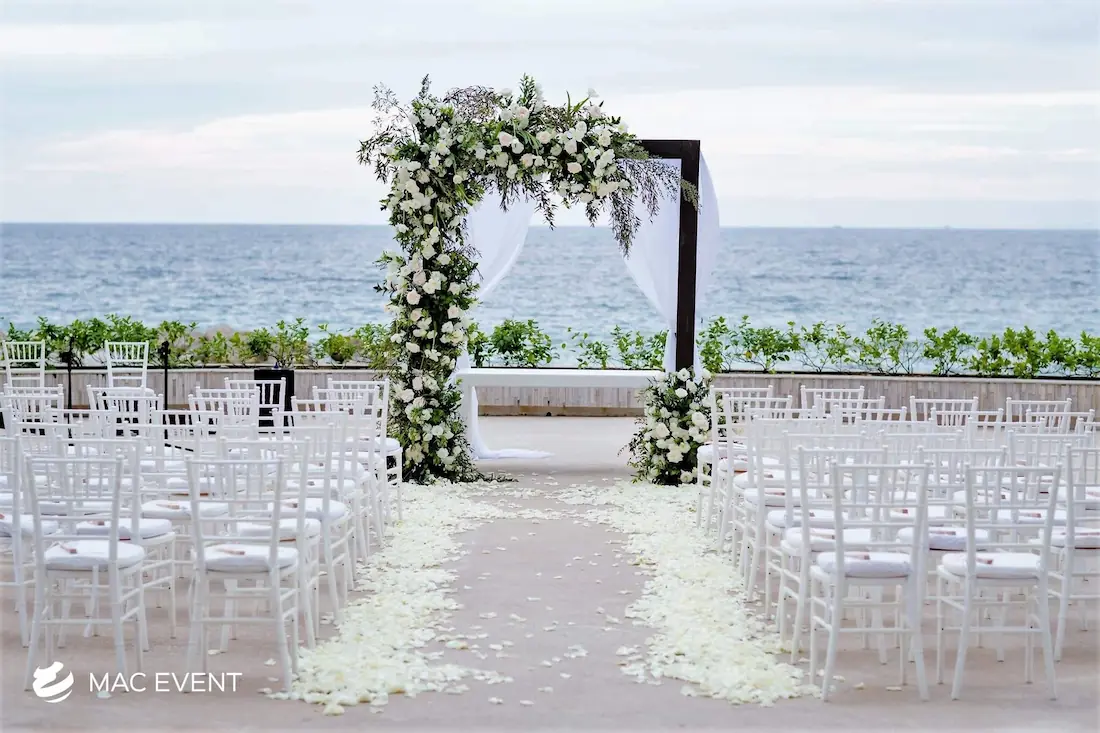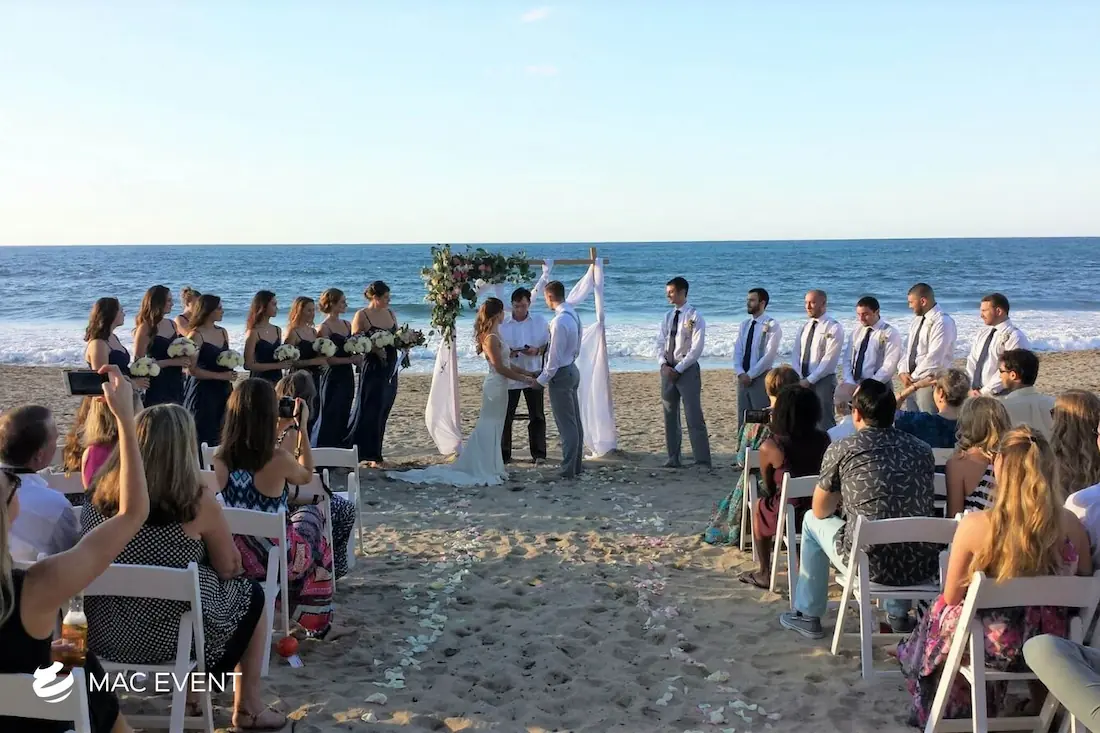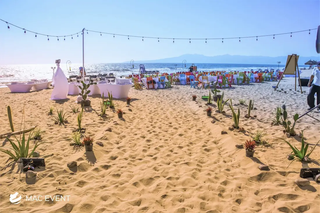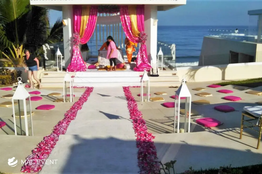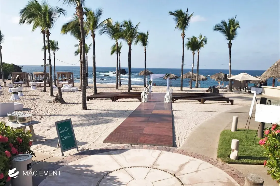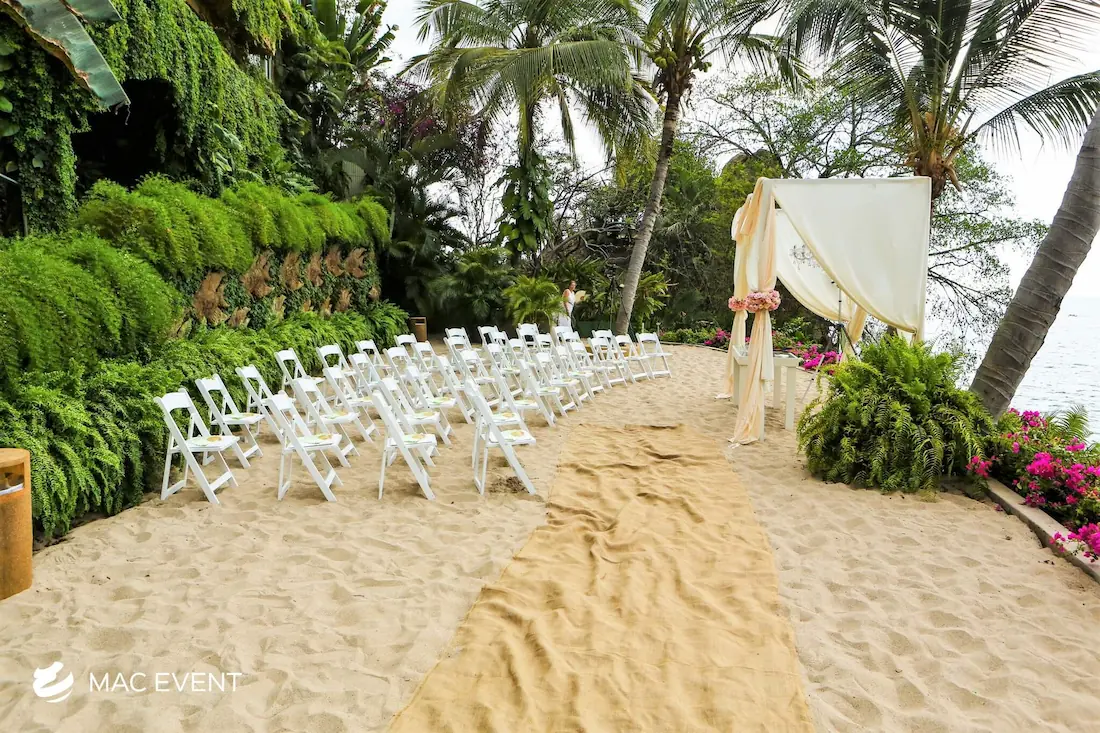 The aisle sets the stage for one of the most meaningful moments of a wedding in Bucerias. As the path leading to the ceremony, it frames the bride’s entrance and creates a breathtaking focal point for guests. Decorated with petals, candles, or greenery, this wedding décor rental adds beauty and emotion to the event. Renting aisle décor in Bucerias ensures a coordinated and elegant setup that complements the theme and enhances the overall ceremony design. For a romantic and unforgettable entrance, the aisle is an essential element of every wedding celebration.