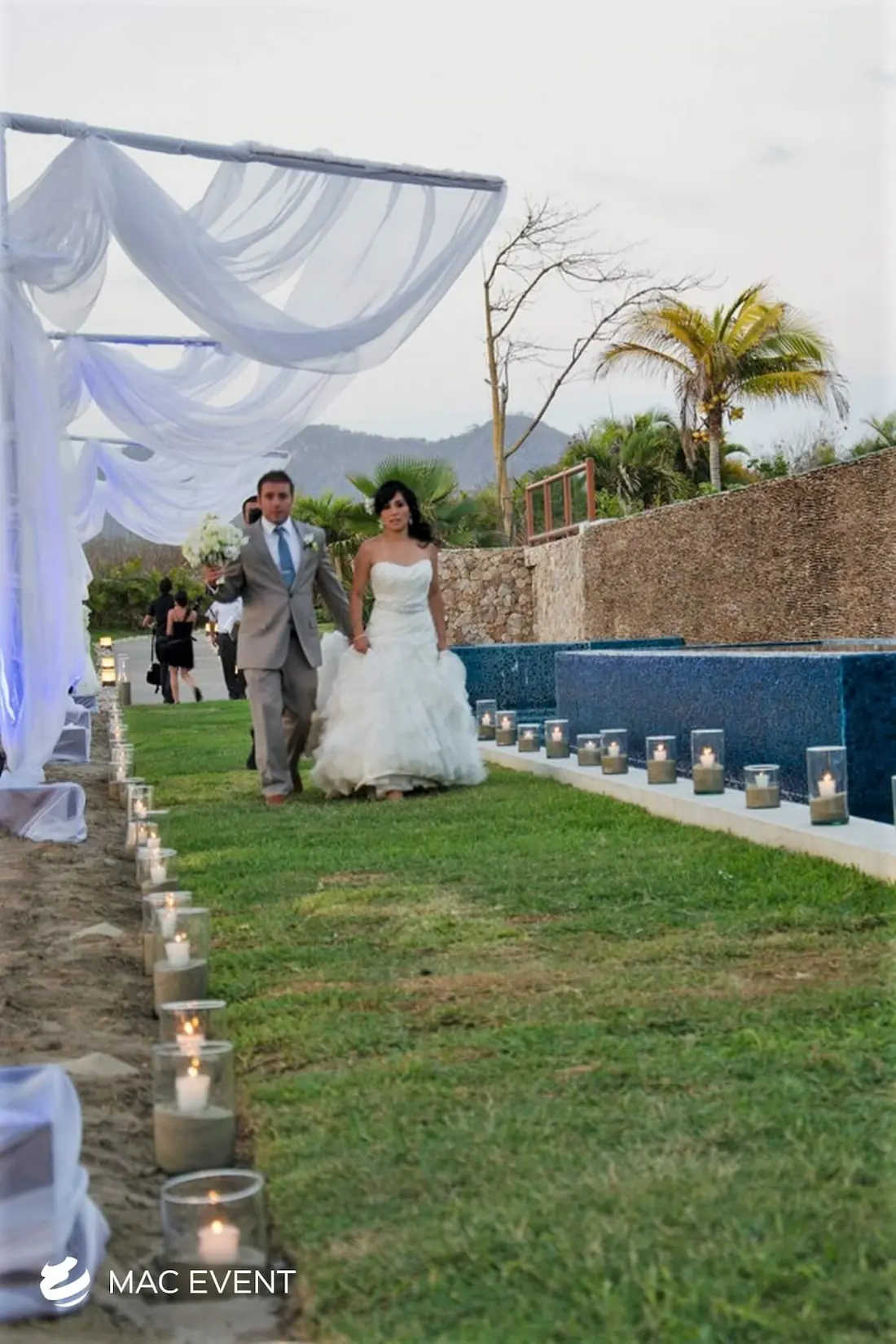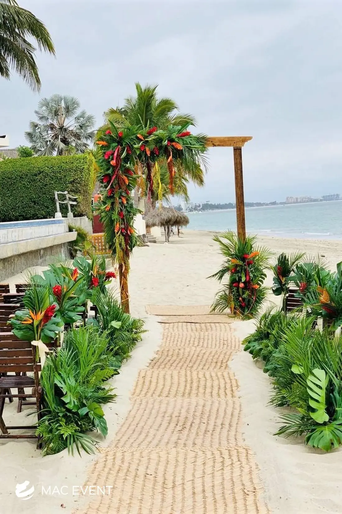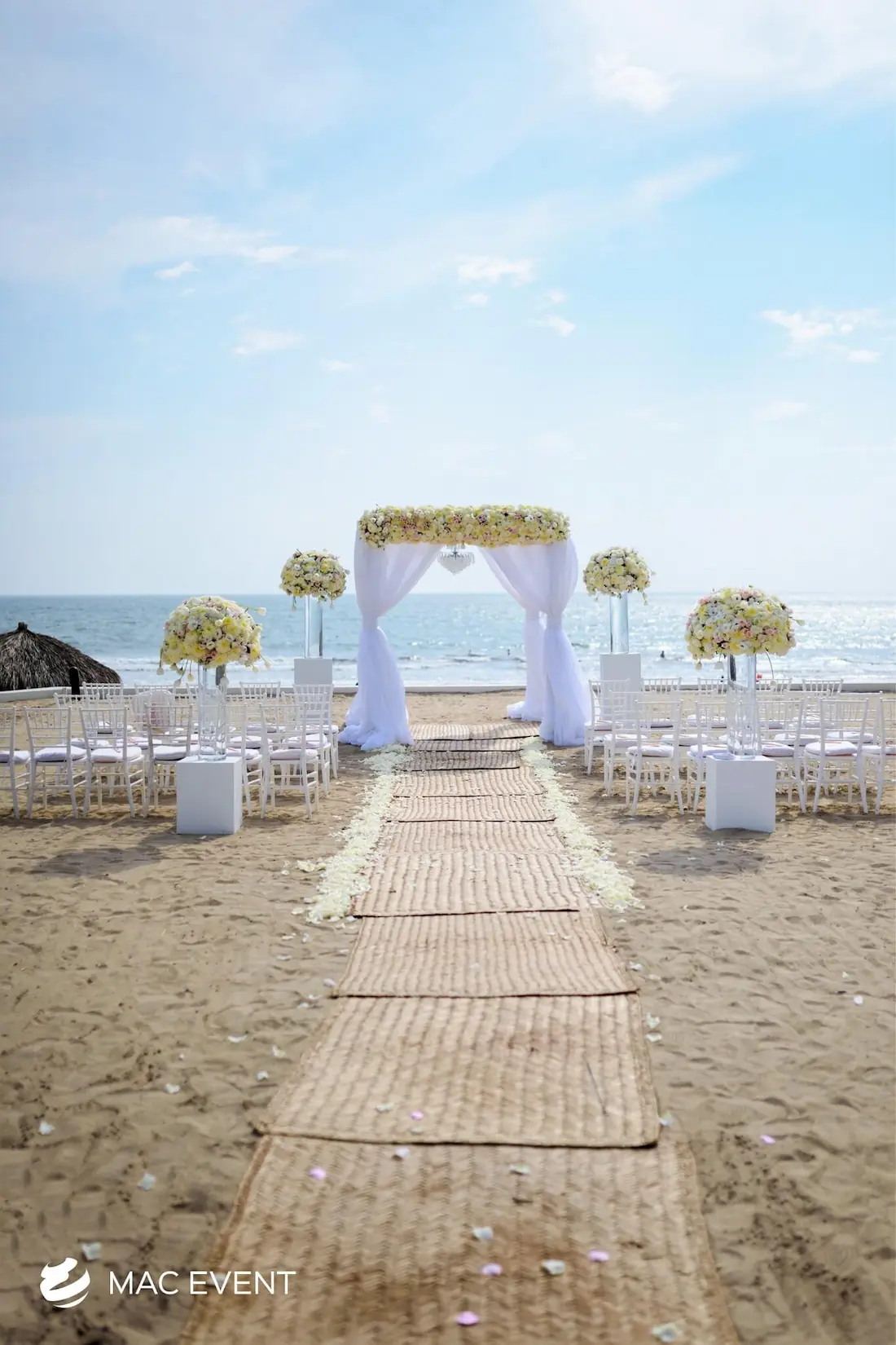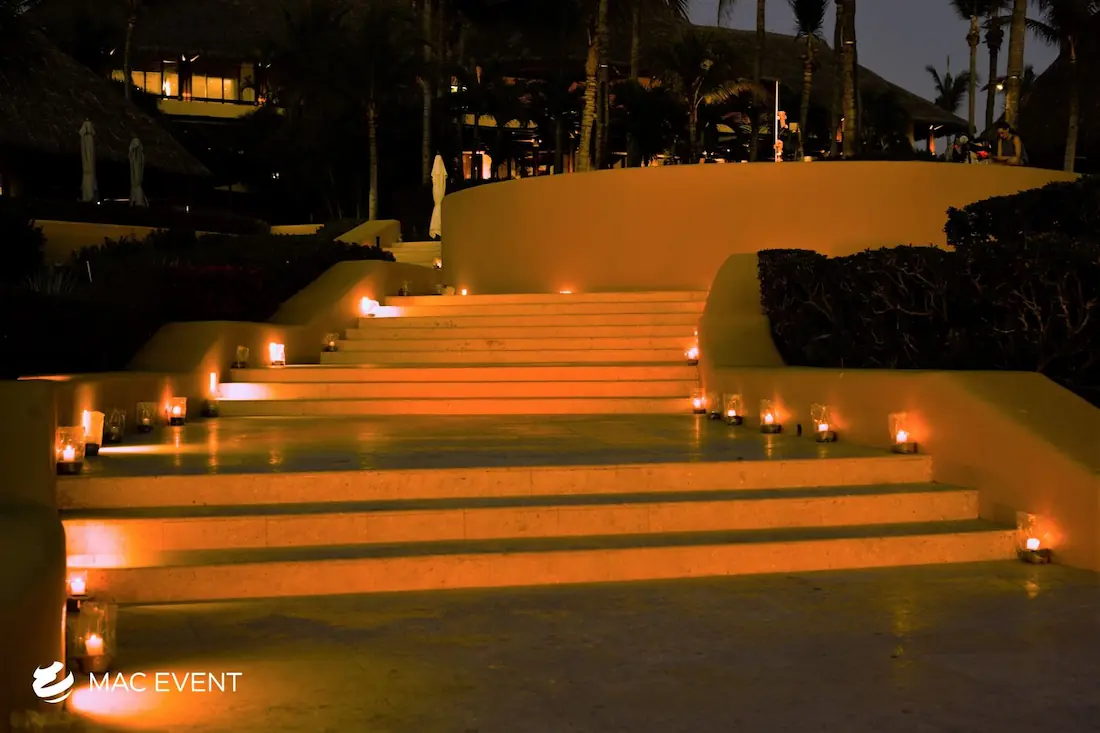 The aisle sets the stage for one of the most meaningful moments of a wedding in Bucerias. As the path leading to the ceremony, it frames the bride’s entrance and creates a breathtaking focal point for guests. Decorated with petals, candles, or greenery, this wedding décor rental adds beauty and emotion to the event. Renting aisle décor in Bucerias ensures a coordinated and elegant setup that complements the theme and enhances the overall ceremony design. For a romantic and unforgettable entrance, the aisle is an essential element of every wedding celebration.