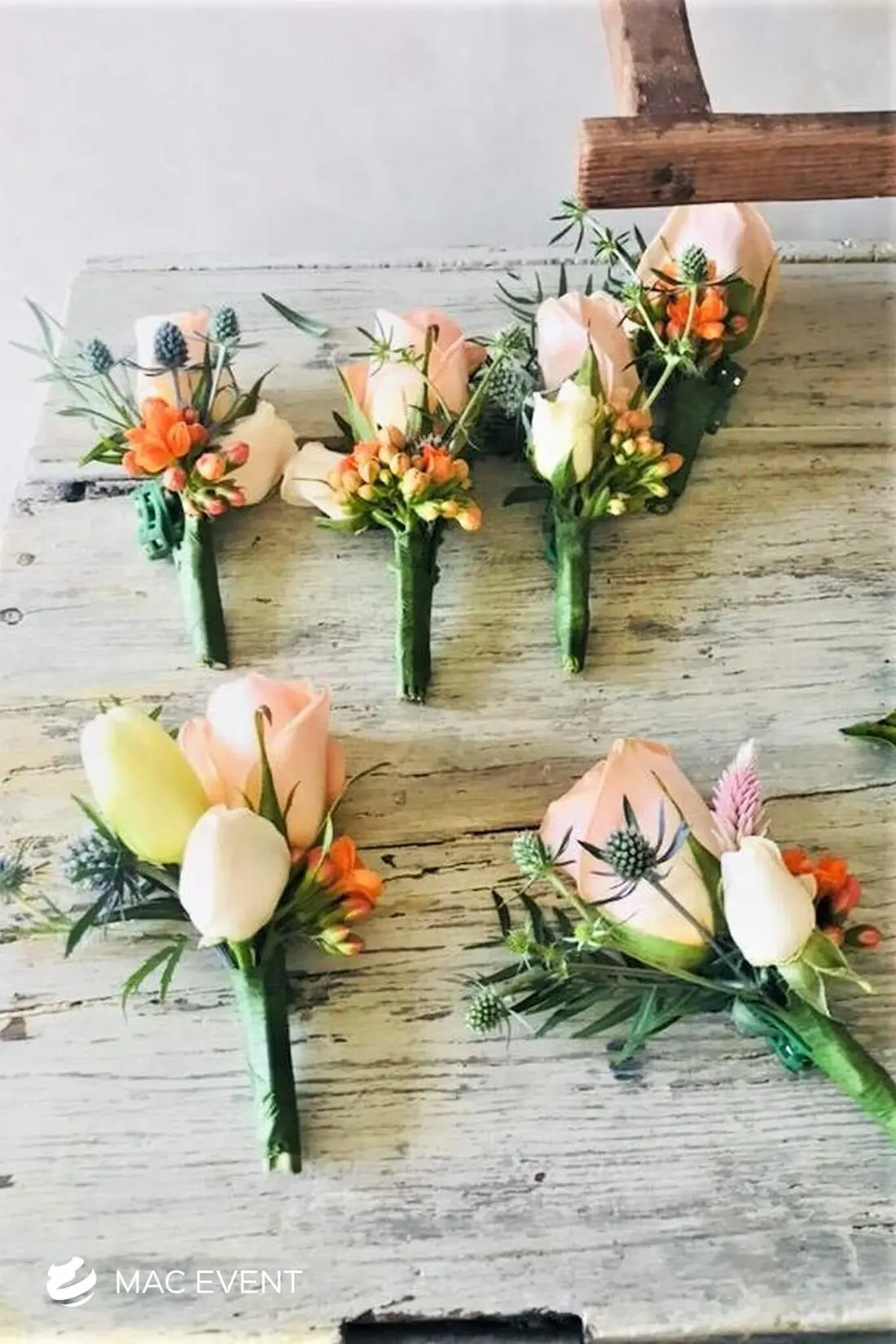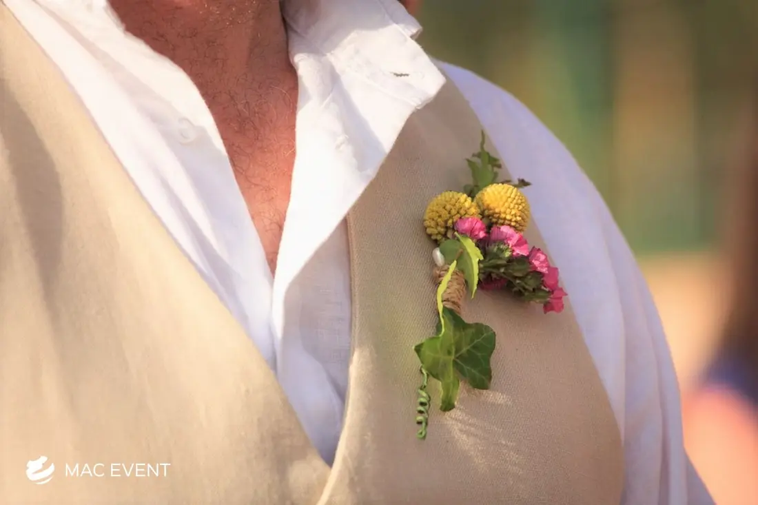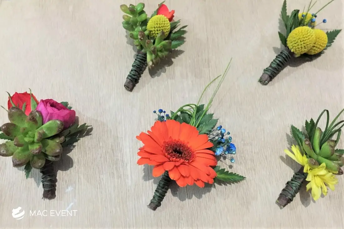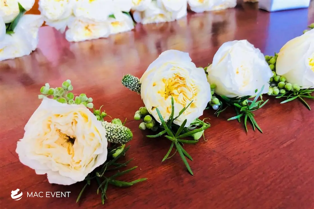 The boutonniere is a refined floral accent that adds elegance and personality to weddings and formal events in Bucerias. Traditionally worn on the lapel, this small wedding floral accessory complements the bride’s bouquet and ties the overall design together. Crafted with fresh blooms or greenery, the boutonniere highlights the groom, groomsmen, and key family members with a coordinated touch of style. Ordering boutonnieres in Bucerias ensures professional floral design and freshness that match your event’s color palette. For a classic and sophisticated detail, the boutonniere is a timeless finishing element.