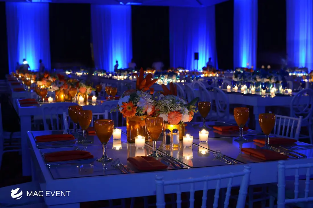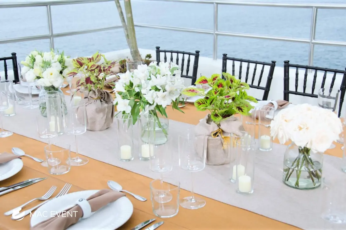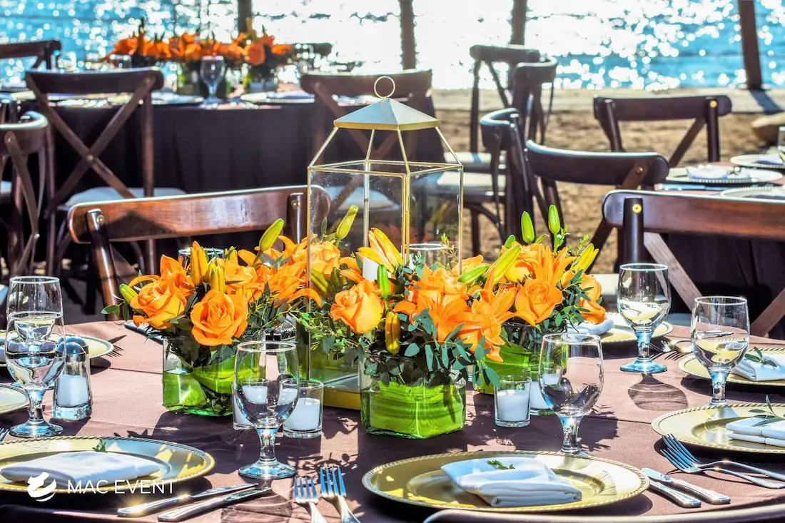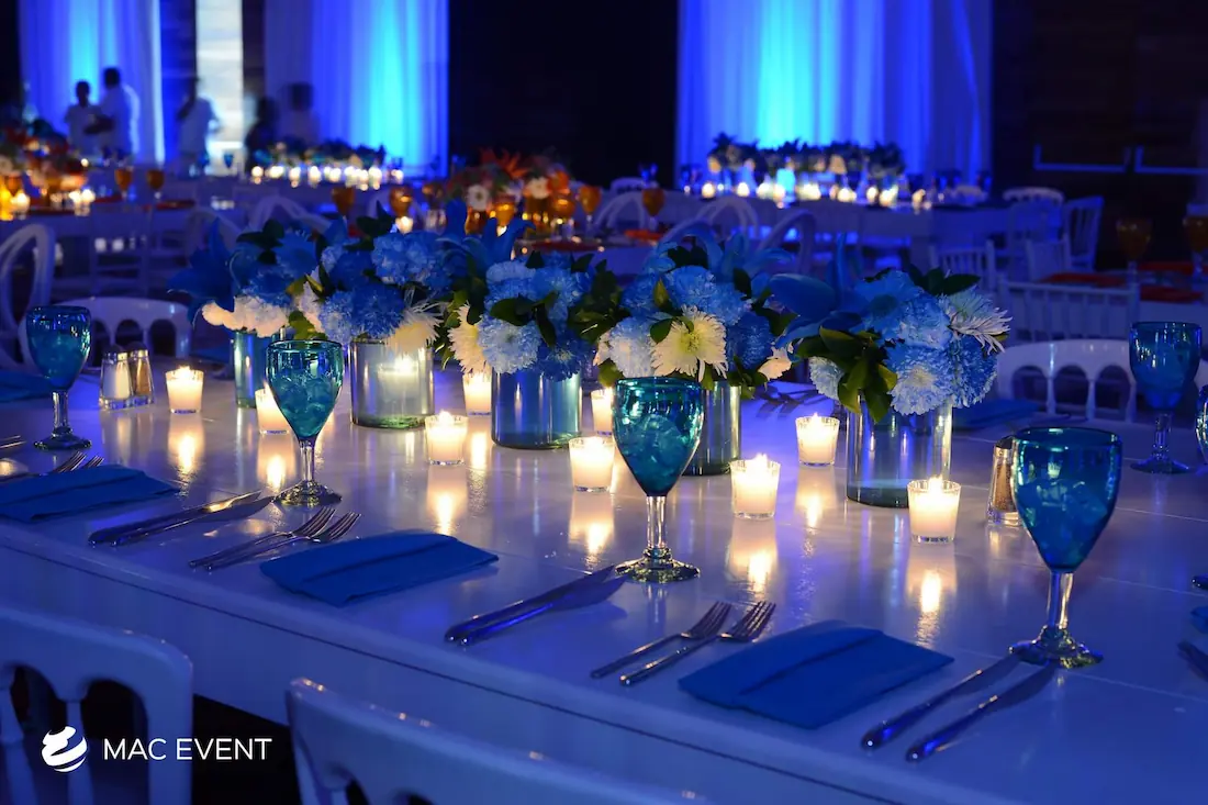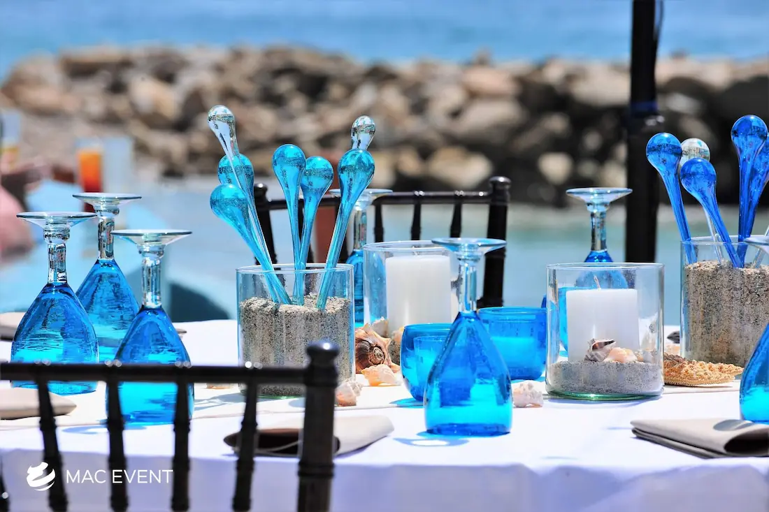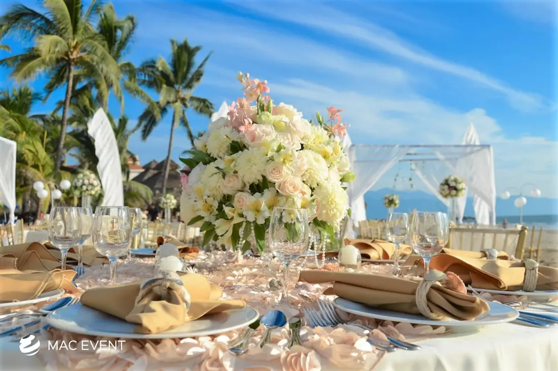 The banquet table centerpiece adds elegance and harmony to long table setups at weddings, parties, and corporate events in Bucerias. Designed to complement extended dining arrangements, this event décor rental enhances the flow and visual balance of your space. Whether styled with lush greenery, candles, or floral arrangements, the banquet table centerpiece creates a warm and sophisticated atmosphere that encourages conversation and connection. Renting banquet table centerpieces in Bucerias ensures a coordinated and polished presentation that perfectly matches your event theme. For a refined and inviting dining experience, this centerpiece is an ideal finishing touch.