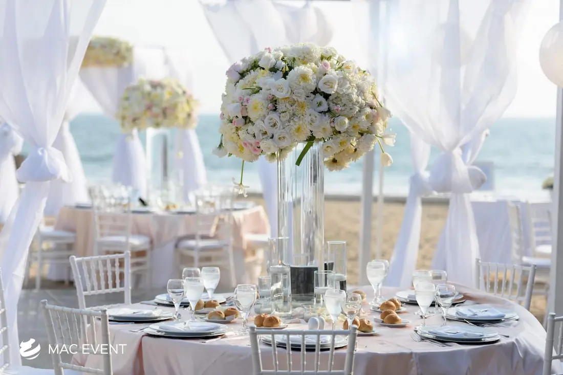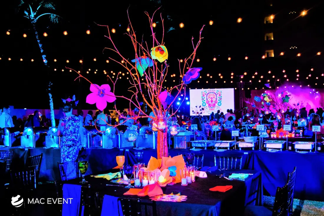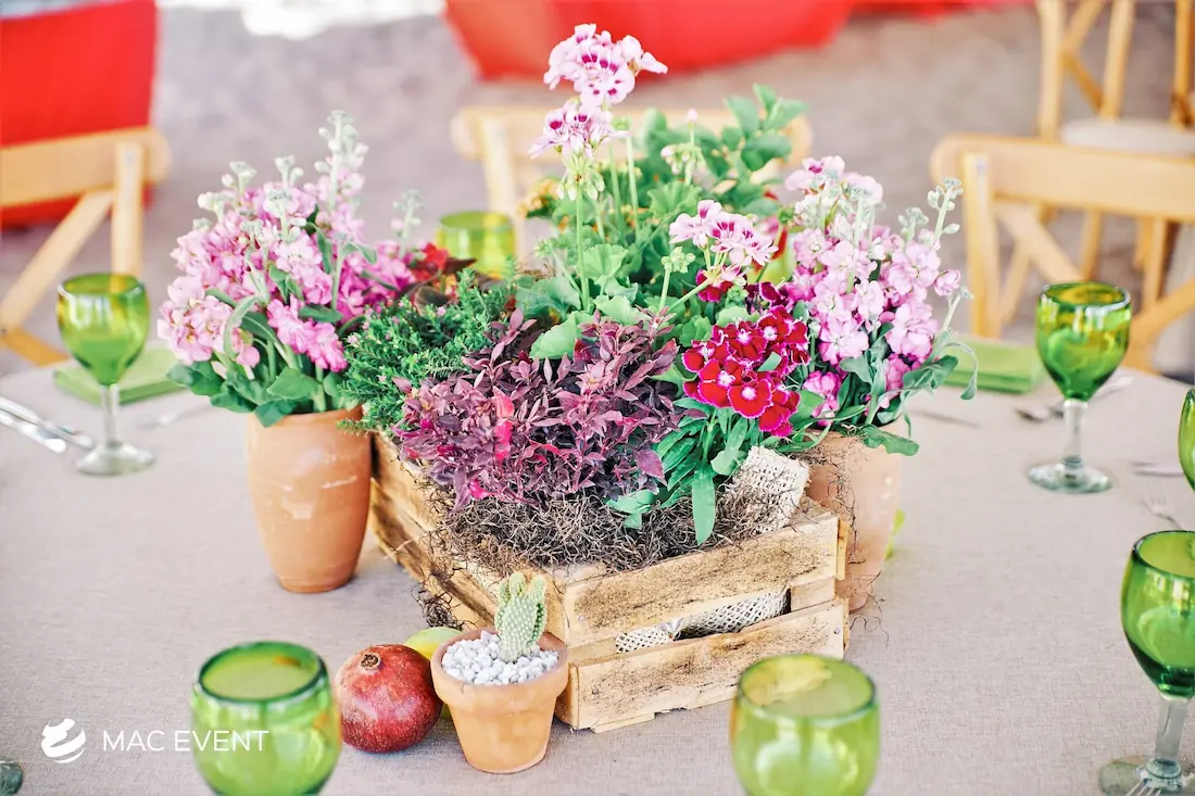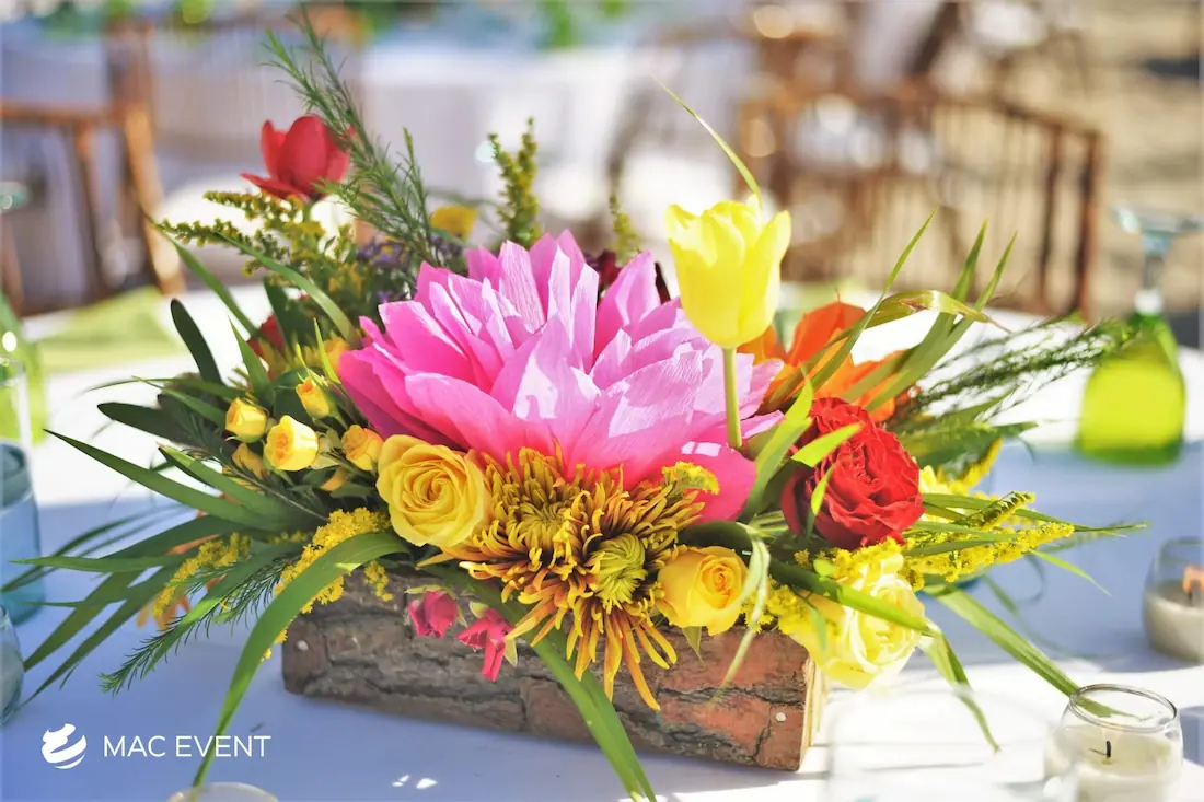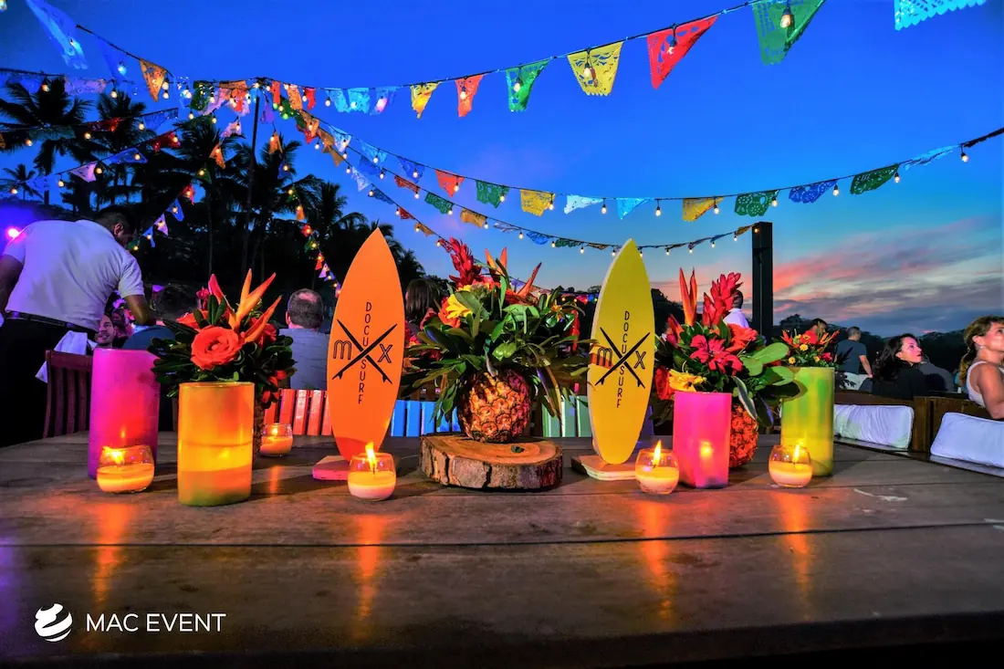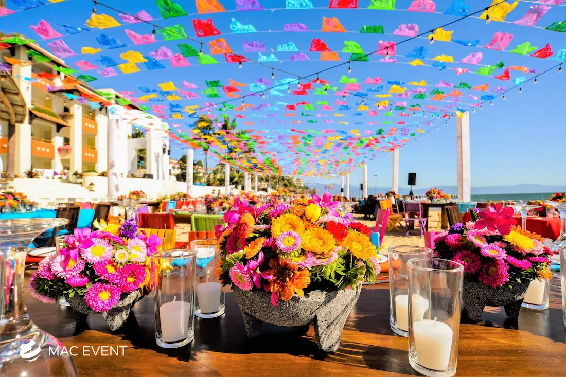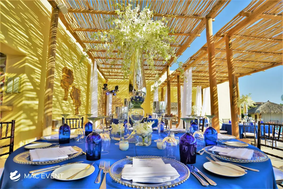 The banquet table centerpiece adds elegance and harmony to long table setups at weddings, parties, and corporate events in Bucerias. Designed to complement extended dining arrangements, this event décor rental enhances the flow and visual balance of your space. Whether styled with lush greenery, candles, or floral arrangements, the banquet table centerpiece creates a warm and sophisticated atmosphere that encourages conversation and connection. Renting banquet table centerpieces in Bucerias ensures a coordinated and polished presentation that perfectly matches your event theme. For a refined and inviting dining experience, this centerpiece is an ideal finishing touch.