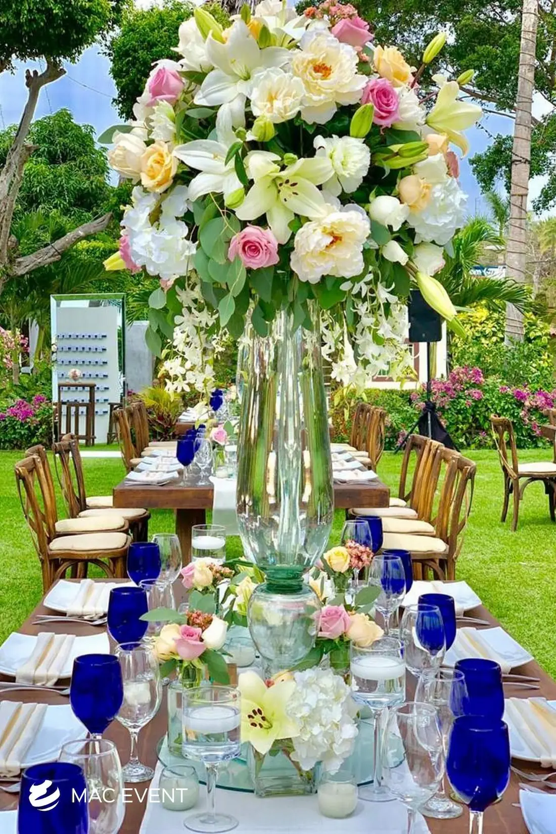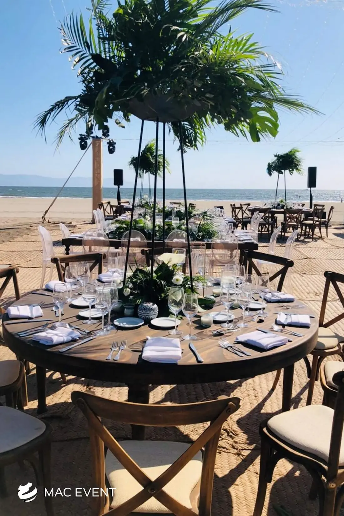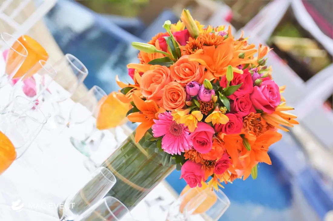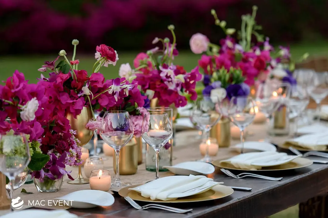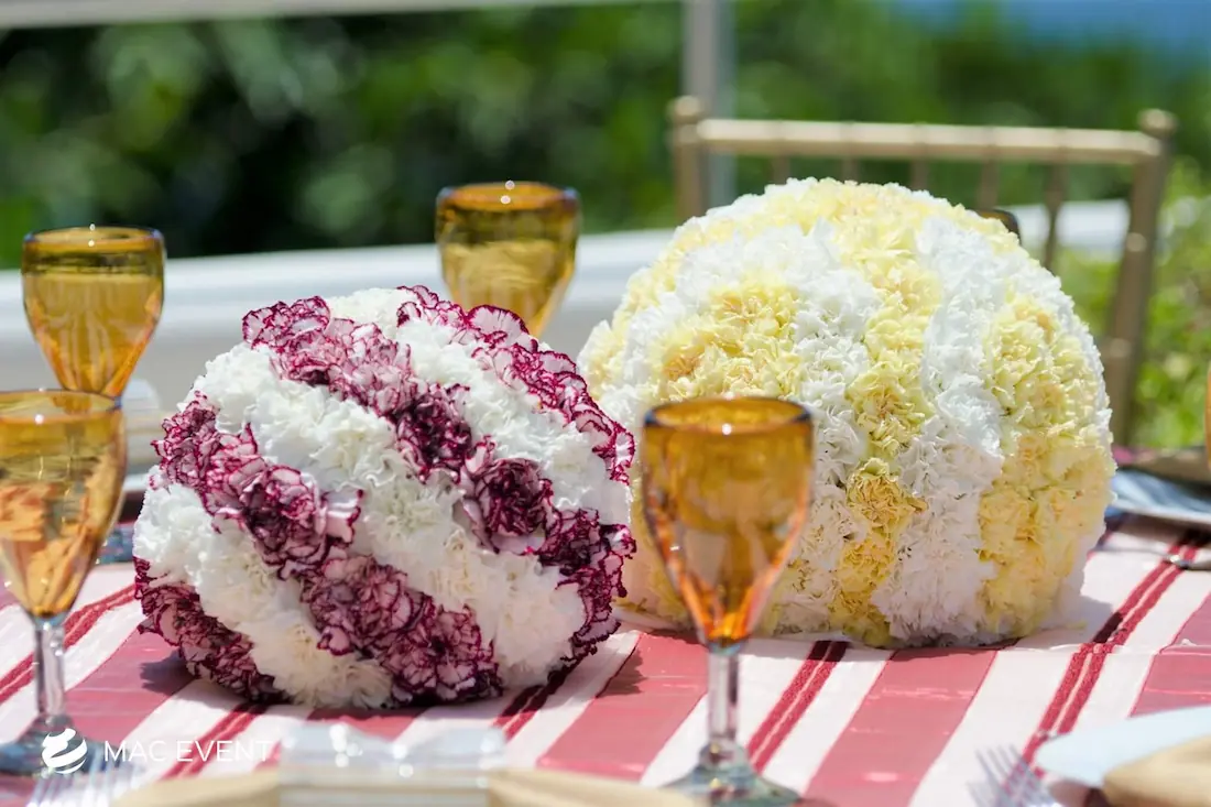 The banquet table centerpiece adds elegance and harmony to long table setups at weddings, parties, and corporate events in Bucerias. Designed to complement extended dining arrangements, this event décor rental enhances the flow and visual balance of your space. Whether styled with lush greenery, candles, or floral arrangements, the banquet table centerpiece creates a warm and sophisticated atmosphere that encourages conversation and connection. Renting banquet table centerpieces in Bucerias ensures a coordinated and polished presentation that perfectly matches your event theme. For a refined and inviting dining experience, this centerpiece is an ideal finishing touch.