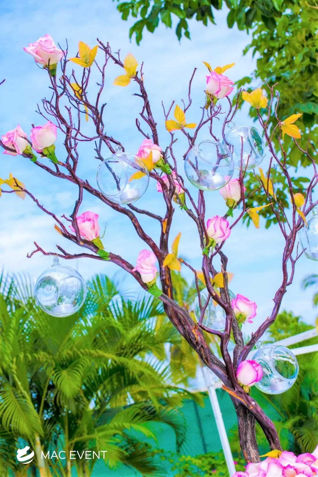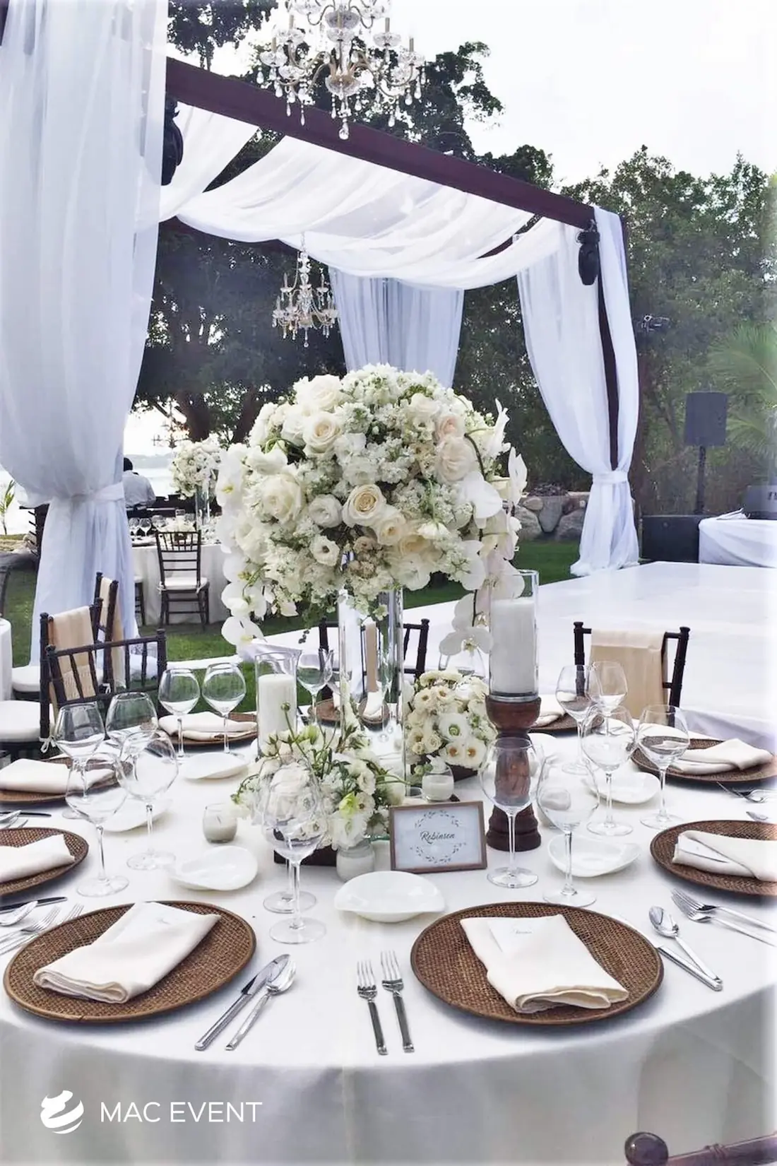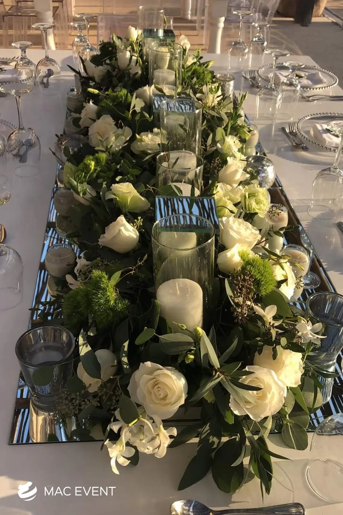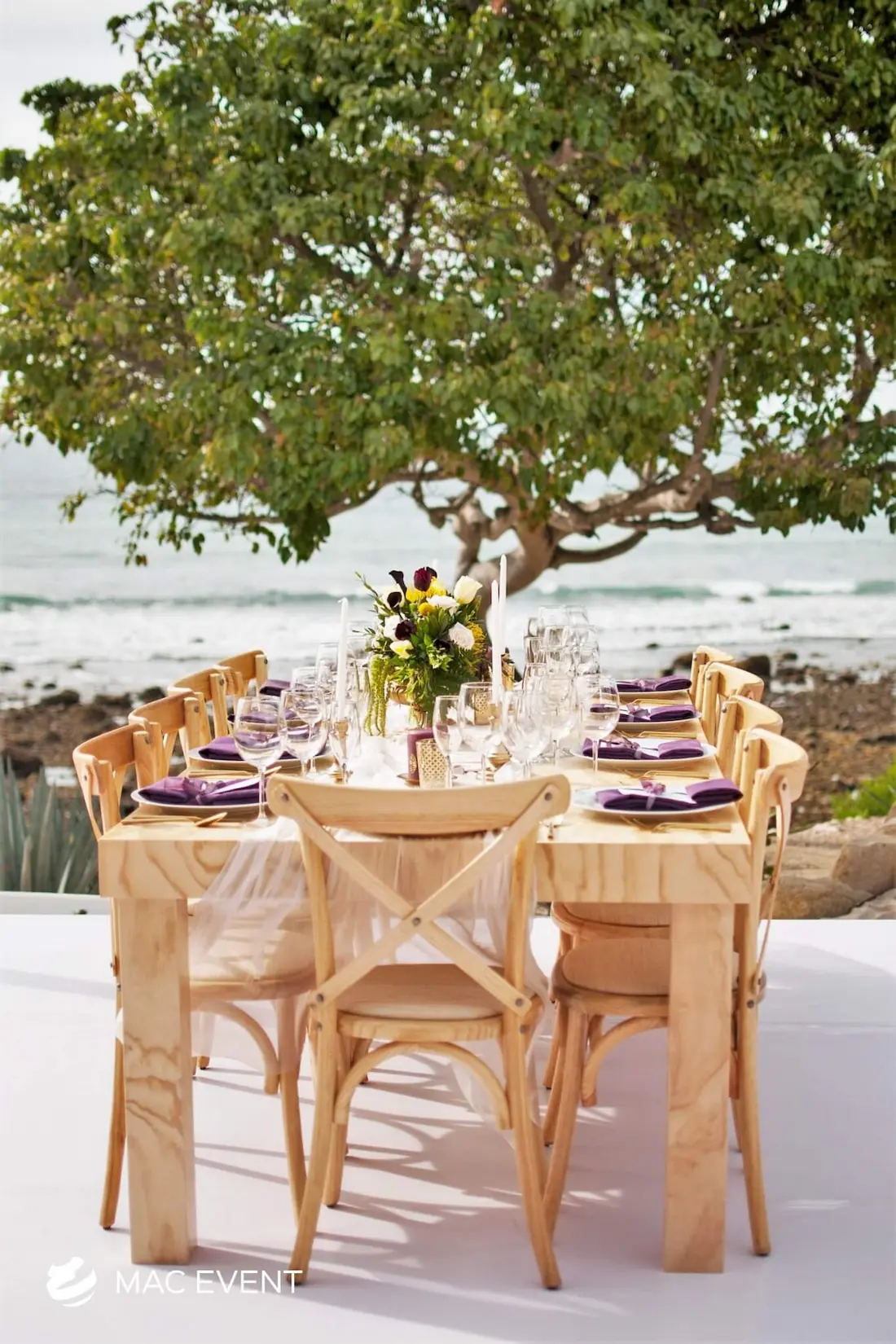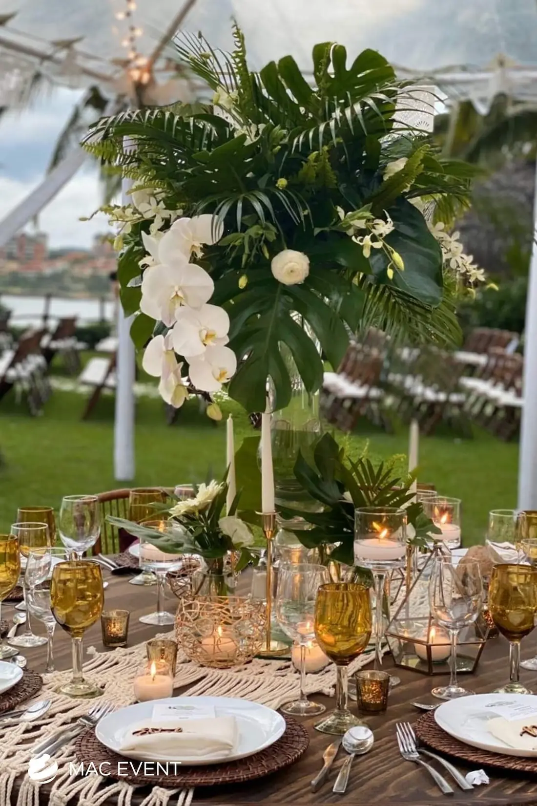 The banquet table centerpiece adds elegance and harmony to long table setups at weddings, parties, and corporate events in Bucerias. Designed to complement extended dining arrangements, this event décor rental enhances the flow and visual balance of your space. Whether styled with lush greenery, candles, or floral arrangements, the banquet table centerpiece creates a warm and sophisticated atmosphere that encourages conversation and connection. Renting banquet table centerpieces in Bucerias ensures a coordinated and polished presentation that perfectly matches your event theme. For a refined and inviting dining experience, this centerpiece is an ideal finishing touch.