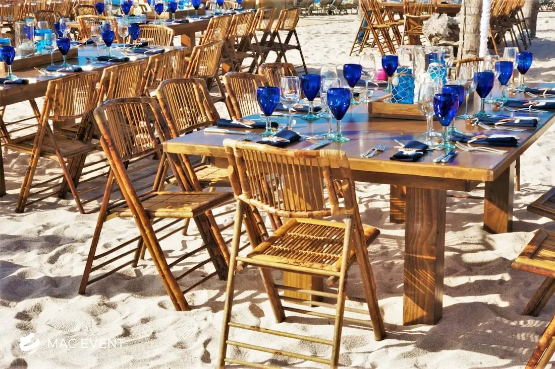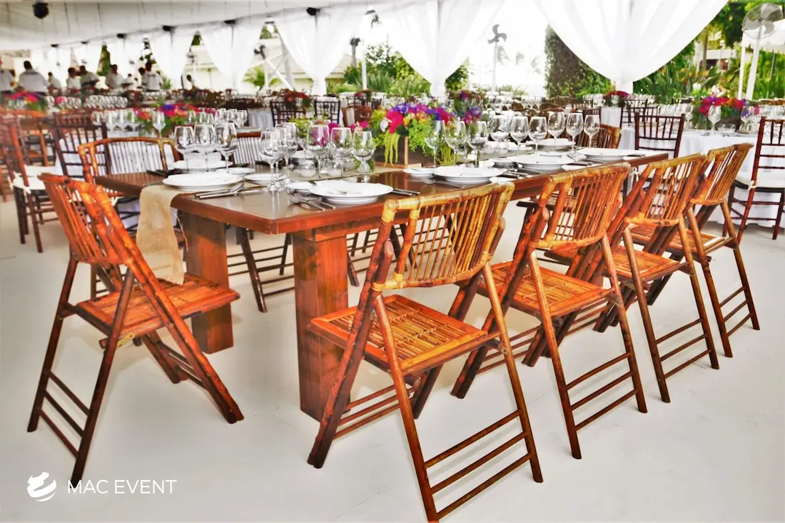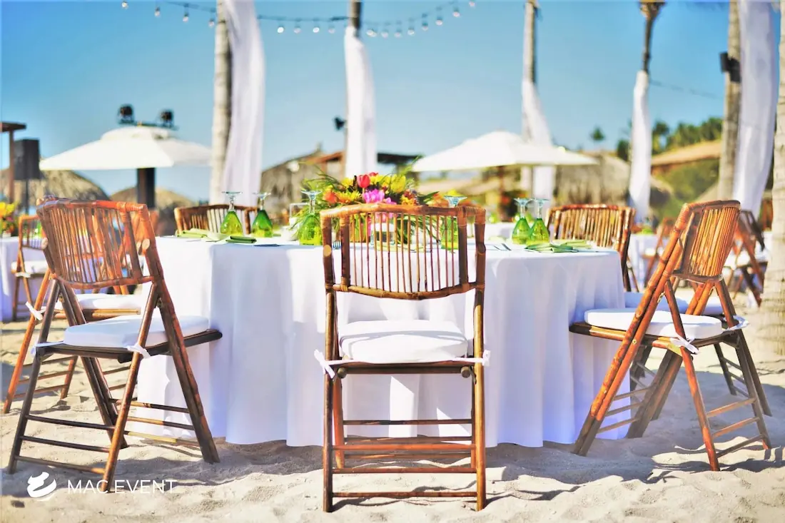 The bamboo chair is a perfect choice for tropical weddings, beach parties, and outdoor events in Bucerias. Its natural texture and warm tone create a relaxed yet elegant atmosphere that blends beautifully with the local surroundings. Lightweight and eco-friendly, this bamboo chair rental is ideal for open-air ceremonies and casual gatherings where comfort and style matter equally. Renting bamboo chairs adds a touch of authenticity and charm to your event while ensuring a cohesive and inviting setup. For a tropical, sustainable, and refined look, the bamboo chair brings nature’s beauty into every celebration in Bucerias.
