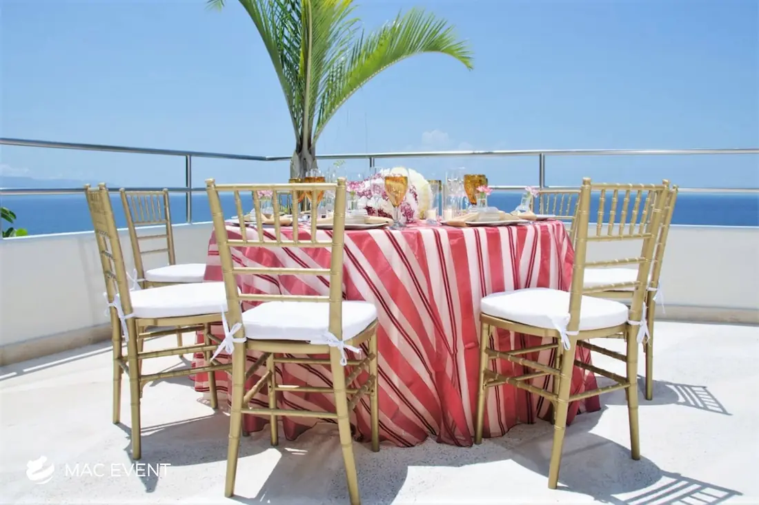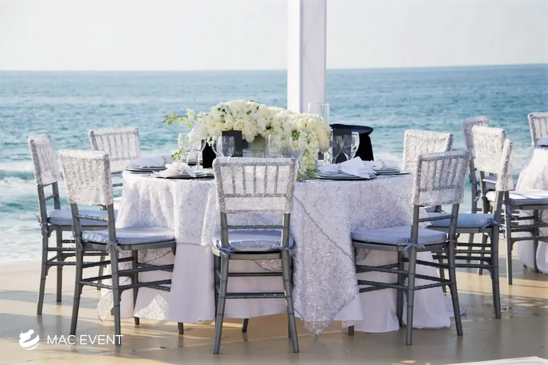 The resin chiavari chair, also known as a tiffany chair, is a popular choice for elegant weddings, private parties, and corporate events in Bucerias. Its timeless design and glossy finish add a touch of sophistication to any setting, whether on the beach, in a garden, or at an indoor venue. Made from durable resin, this chiavari chair rental combines beauty and practicality as it is lightweight, sturdy, and suitable for any environment. Renting tiffany chairs ensures a coordinated and polished look that complements your décor while keeping guests comfortable. For style, comfort, and reliability, resin chiavari chairs are the perfect seating solution for any event in Bucerias.
