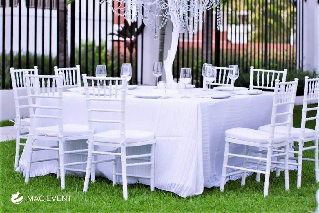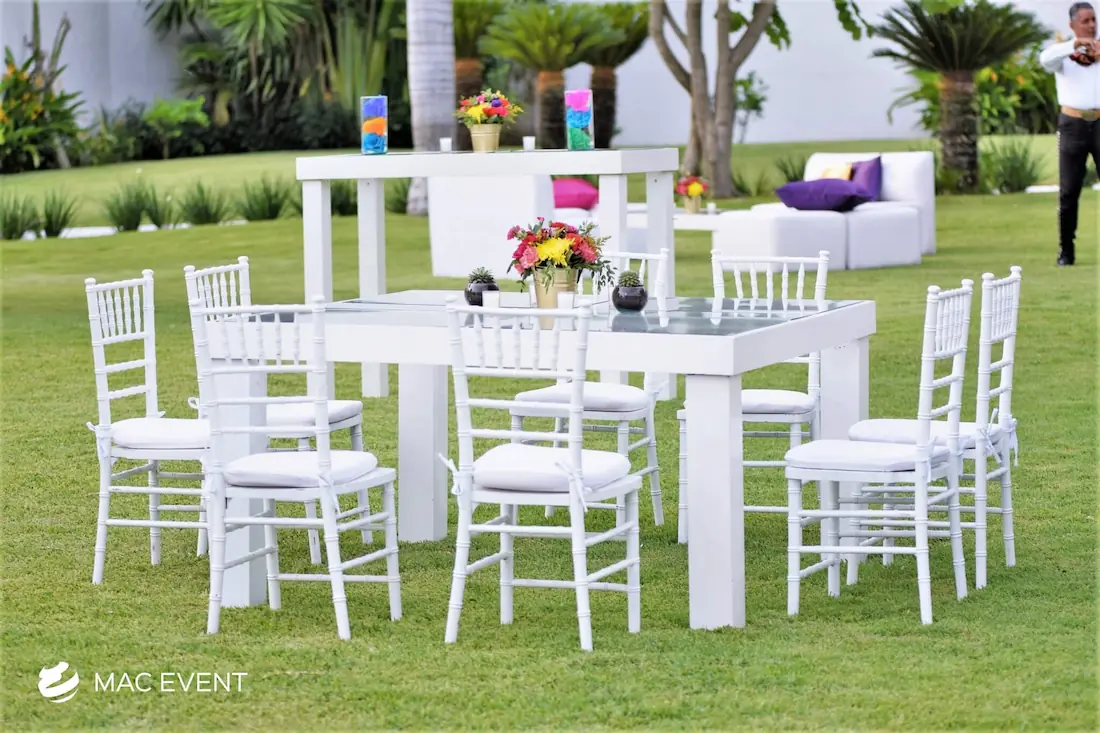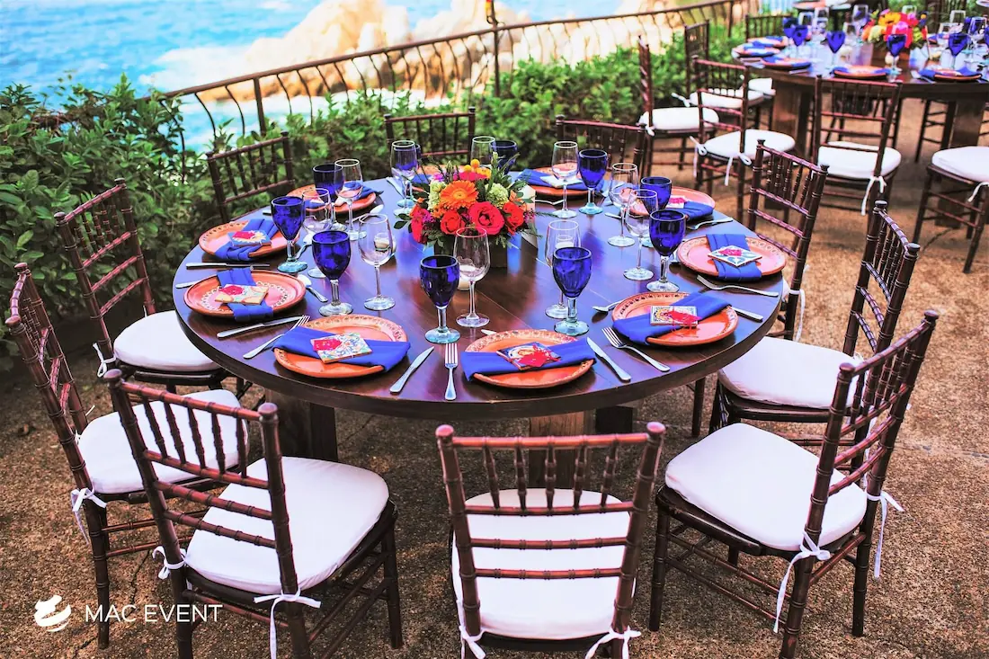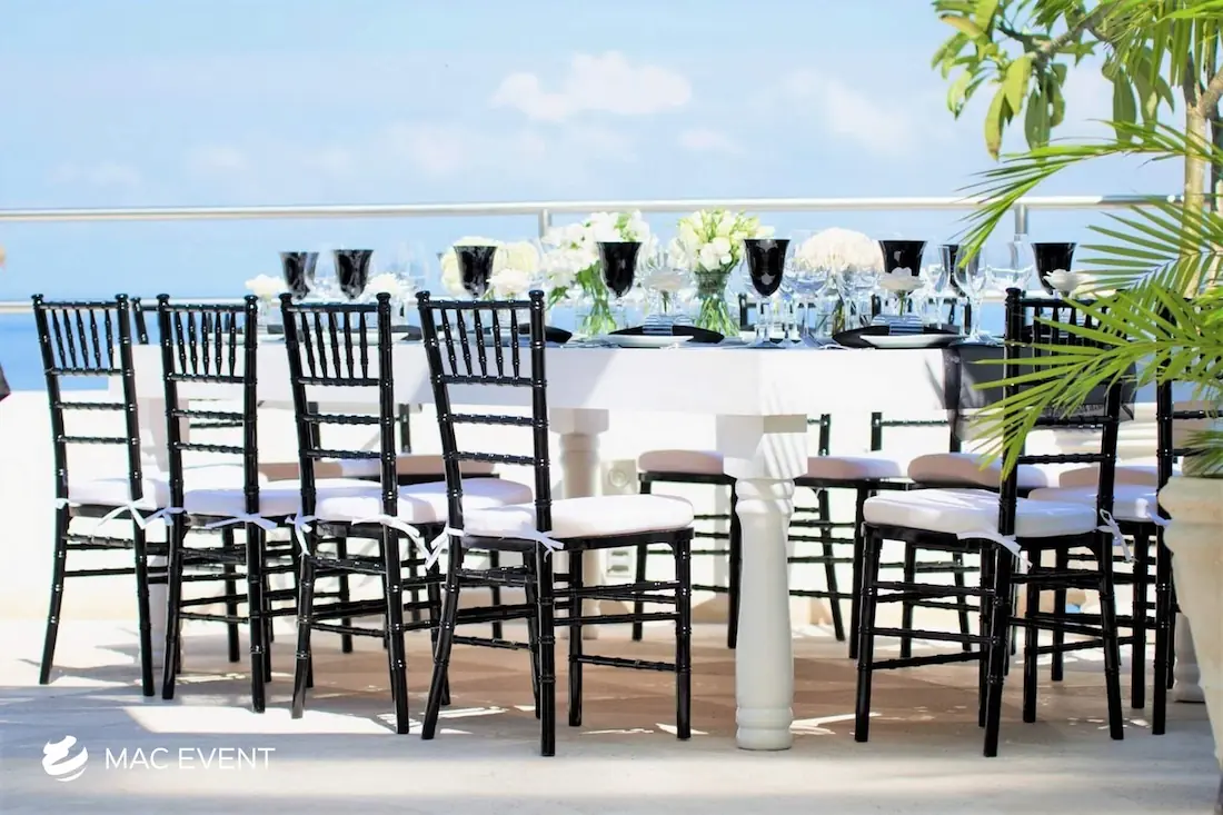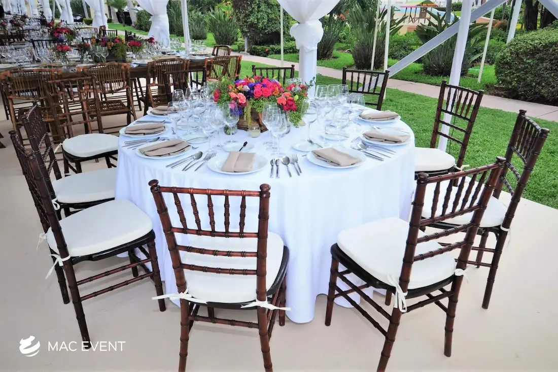 The wood chiavari chair, also known as a tiffany chair, brings warmth and elegance to weddings, parties, and corporate events in Bucerias. Its natural wood finish and classic design make it a favorite for both indoor and outdoor settings. This chiavari chair rental offers a perfect balance of beauty and durability, providing sturdy and comfortable seating for guests. Renting wood tiffany chairs allows you to create a cohesive and refined atmosphere that complements any event style or décor. For those who value sophistication and timeless appeal, wood chiavari chairs are the ideal choice for creating a memorable event in Bucerias.