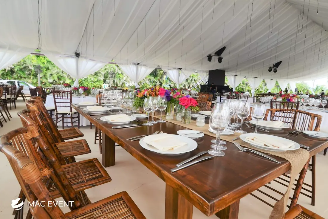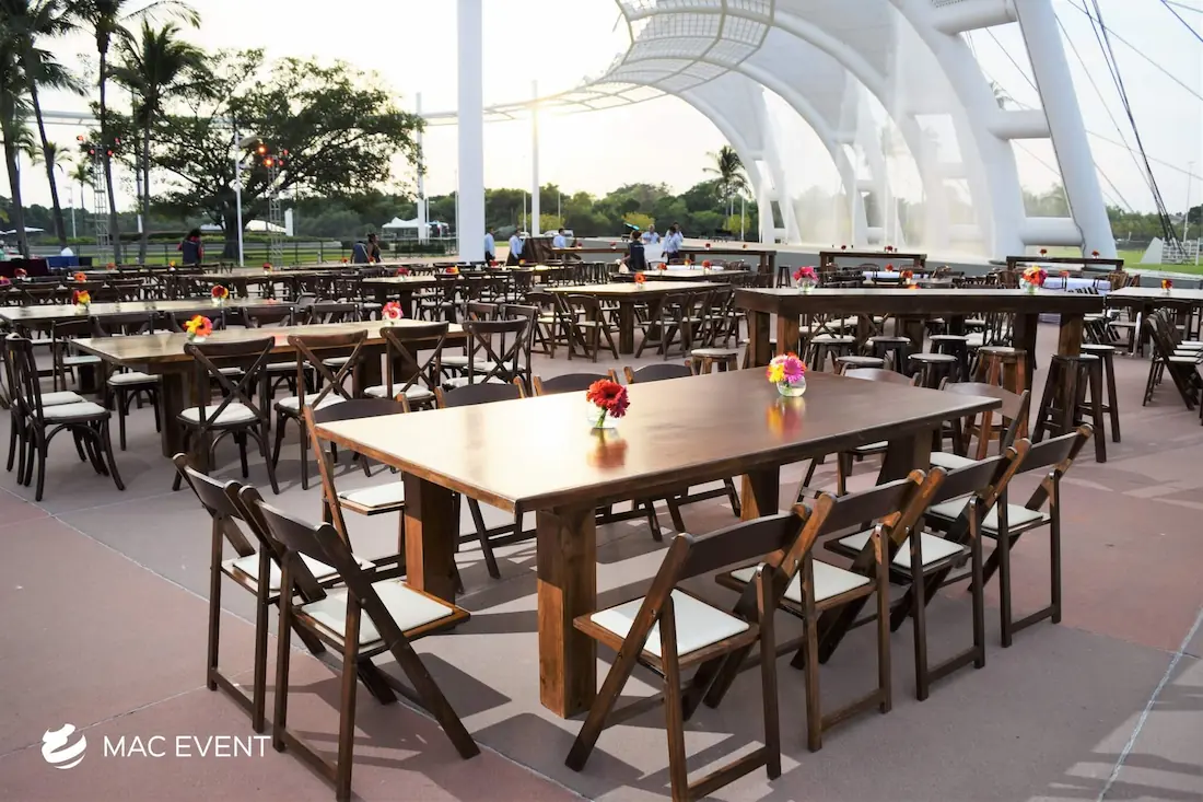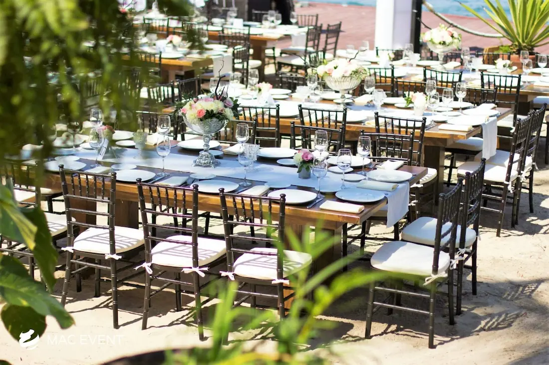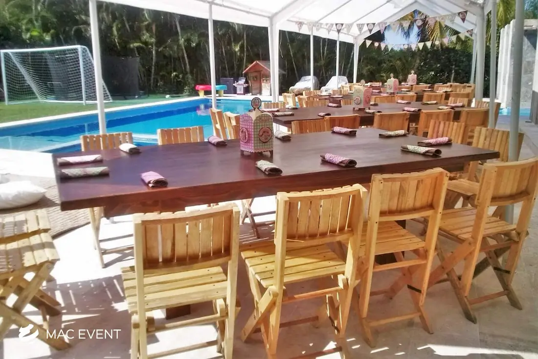 The rectangular rustic table brings natural charm and elegance to weddings, private parties, and corporate events in Bucerias. Its long wooden surface and sturdy design make it perfect for family-style dinners, outdoor receptions, and boho-inspired gatherings. This event table rental adds warmth and authenticity to any setting, blending seamlessly with a variety of décor styles. Renting rectangular rustic tables in Bucerias allows you to create inviting dining spaces that feel both refined and organic. For a timeless, earthy, and beautifully coordinated setup, the rectangular rustic table is a standout choice for any event.