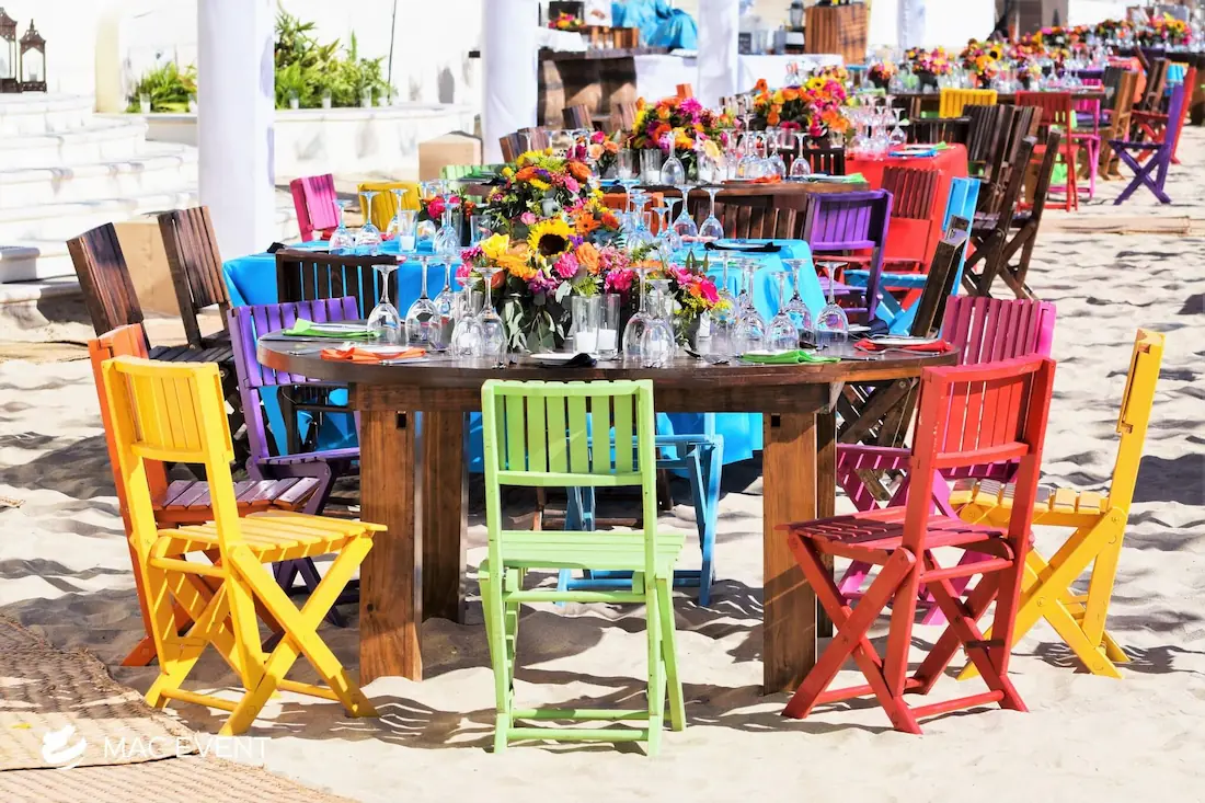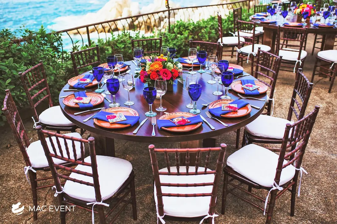 The round rustic table is perfect for weddings, outdoor parties, and elegant gatherings in Bucerias. Its natural wood finish and handcrafted charm create a warm, inviting atmosphere that pairs beautifully with beach, garden, or boho-inspired themes. This event table rental combines style and durability, offering plenty of space for décor, dining, or floral arrangements. Renting round rustic tables in Bucerias adds texture and authenticity to your setup while maintaining comfort and visual harmony. For those who want a touch of natural elegance, the round rustic table is an ideal choice to enhance any celebration.