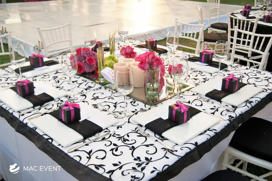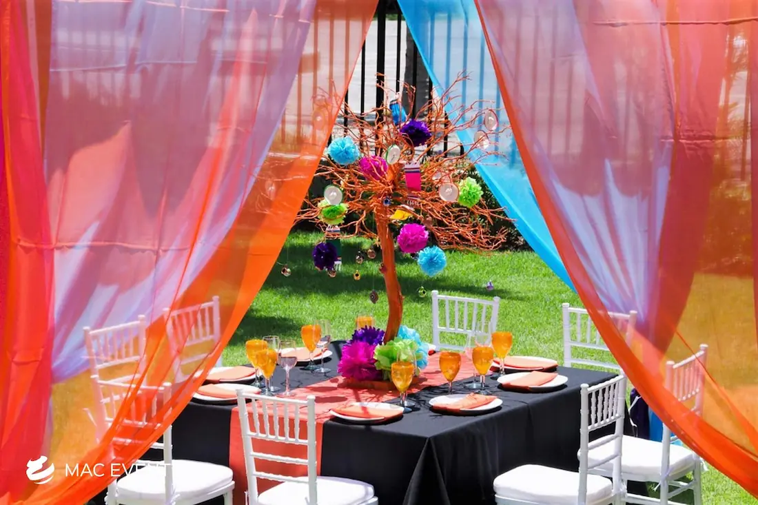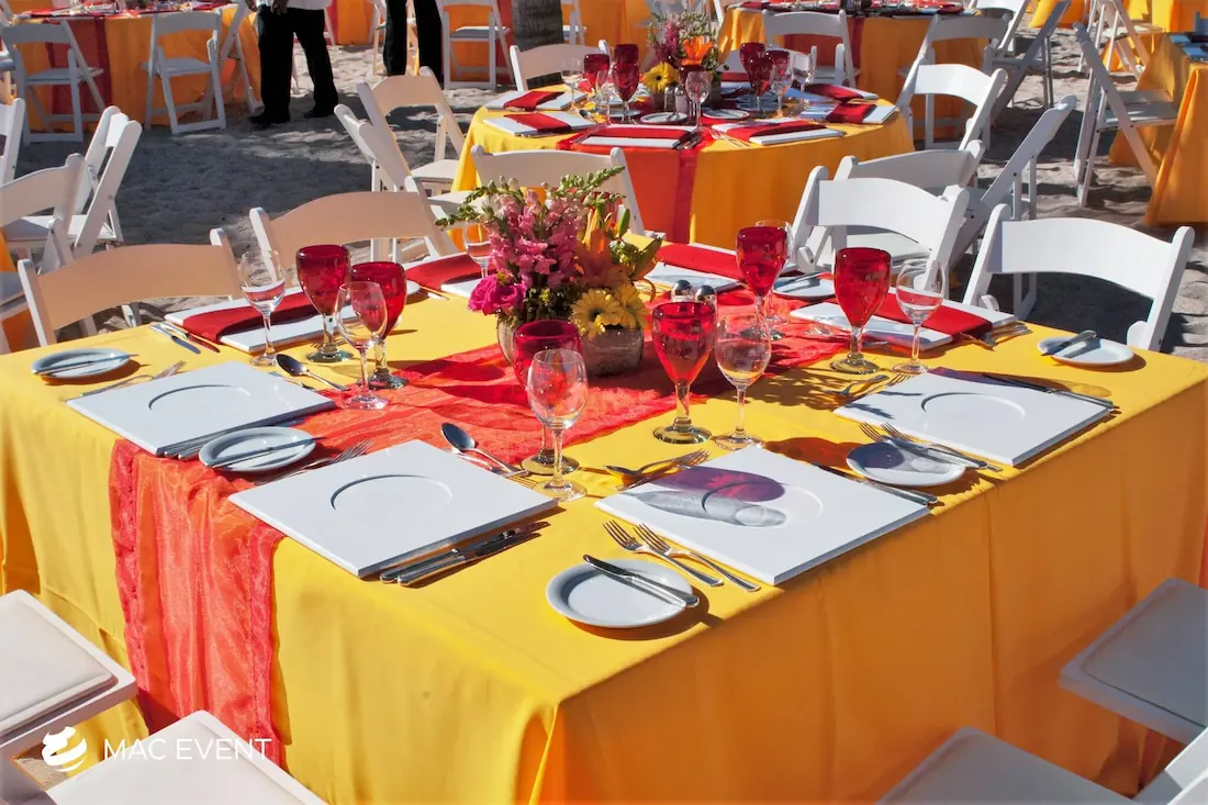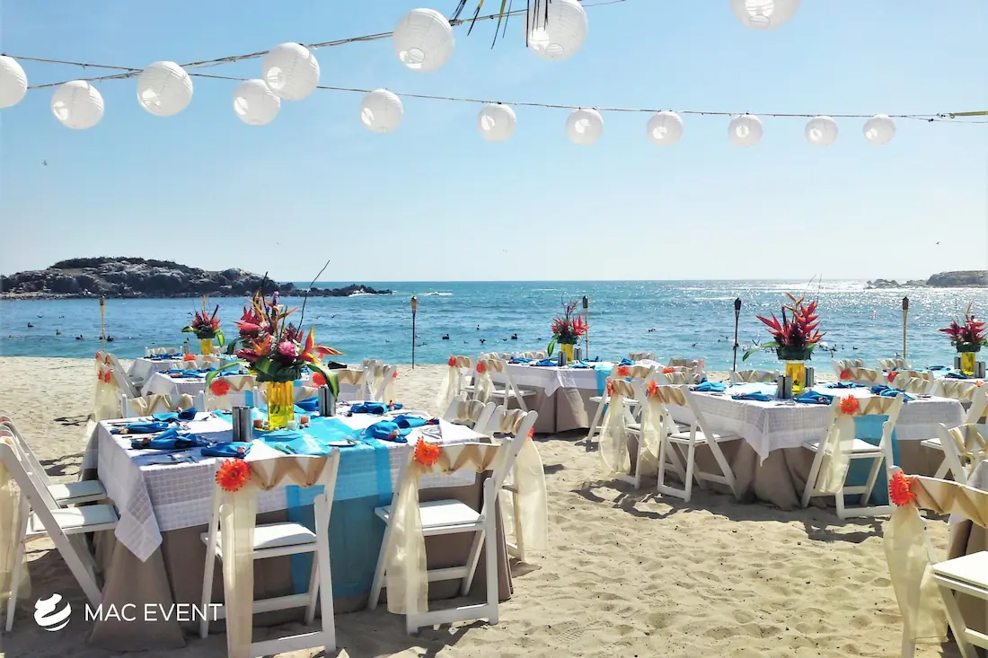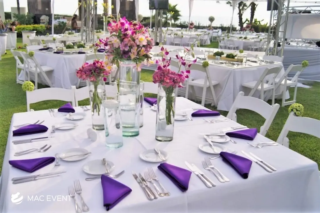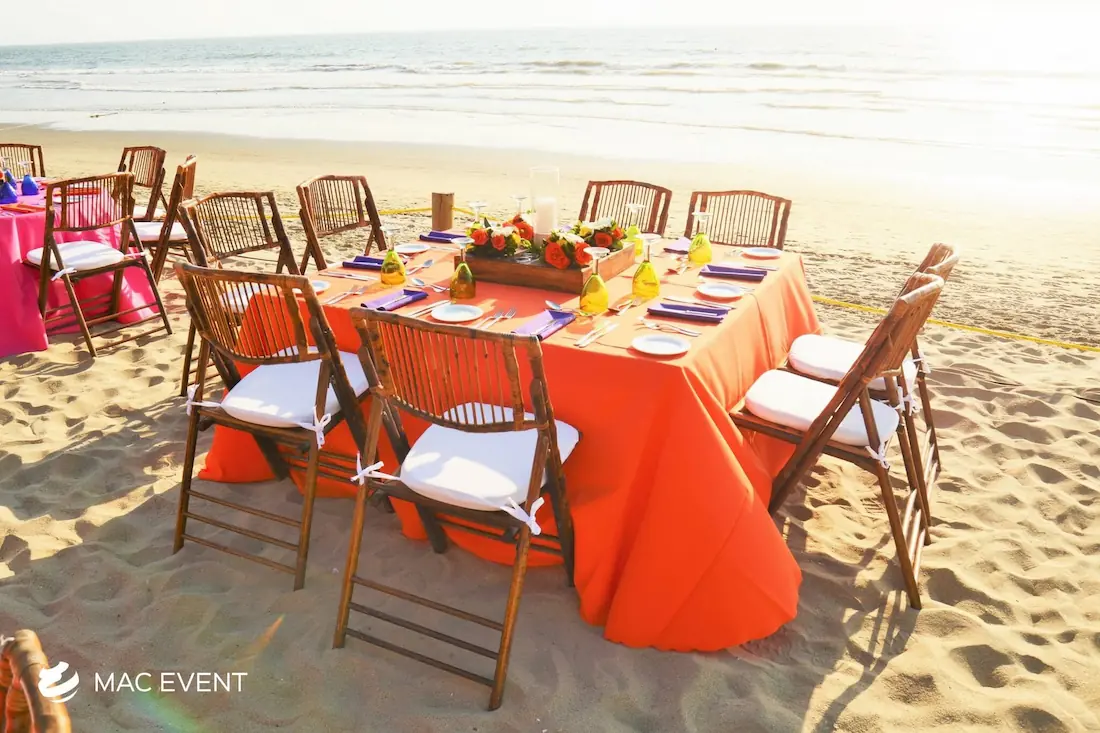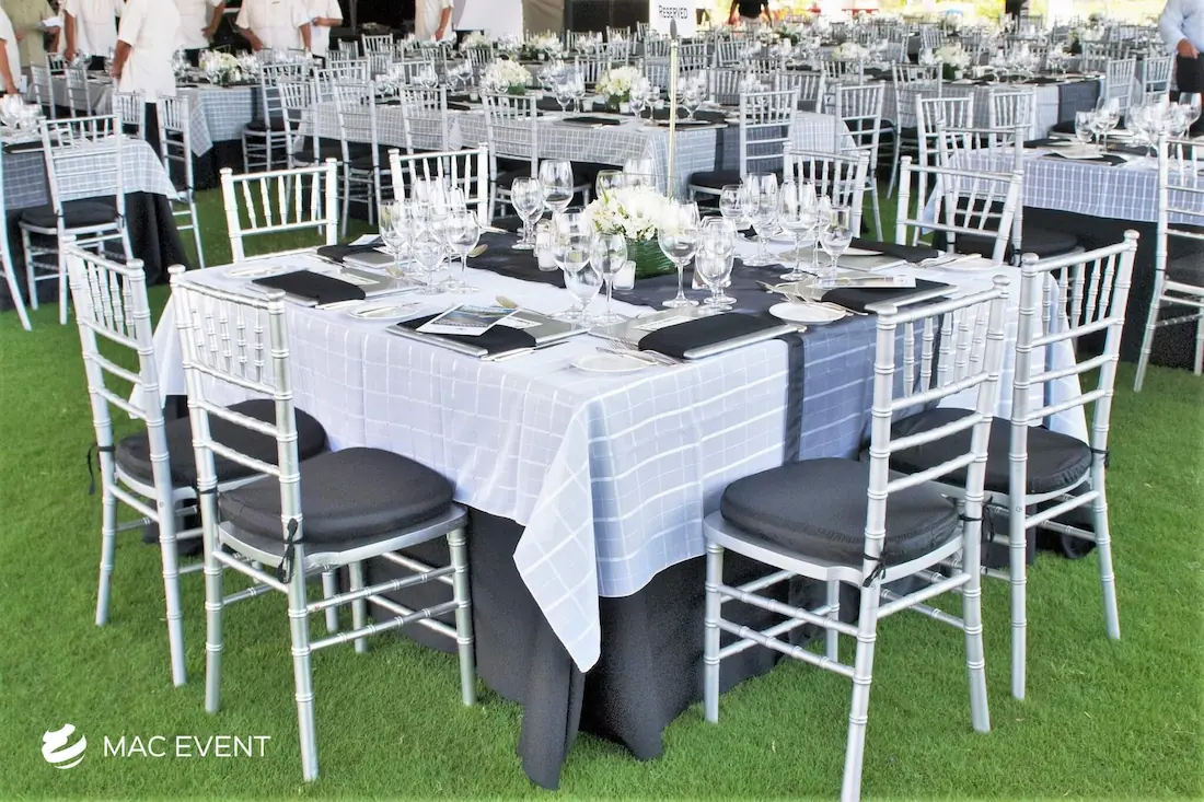 The square table offers a modern and balanced look for weddings, private parties, and corporate events in Bucerias. Its clean lines and symmetrical shape make it ideal for intimate seating arrangements and stylish dining setups. This event table rental brings a contemporary touch to any décor while maintaining practicality and comfort for guests. Renting square tables in Bucerias allows you to create a unique layout that stands out from traditional designs, blending elegance with functionality. For a sophisticated and well-organized event space, the square table is a perfect choice.