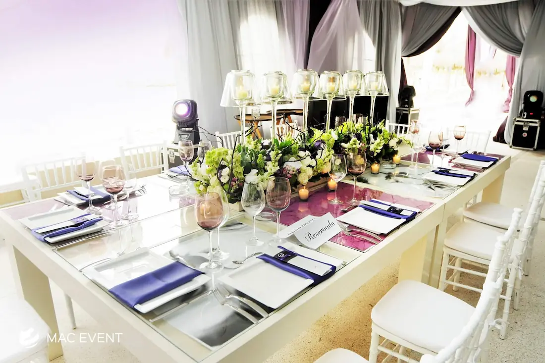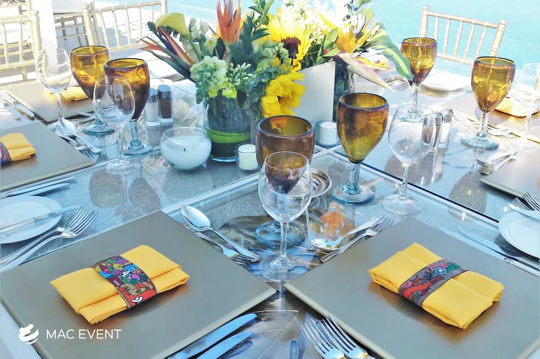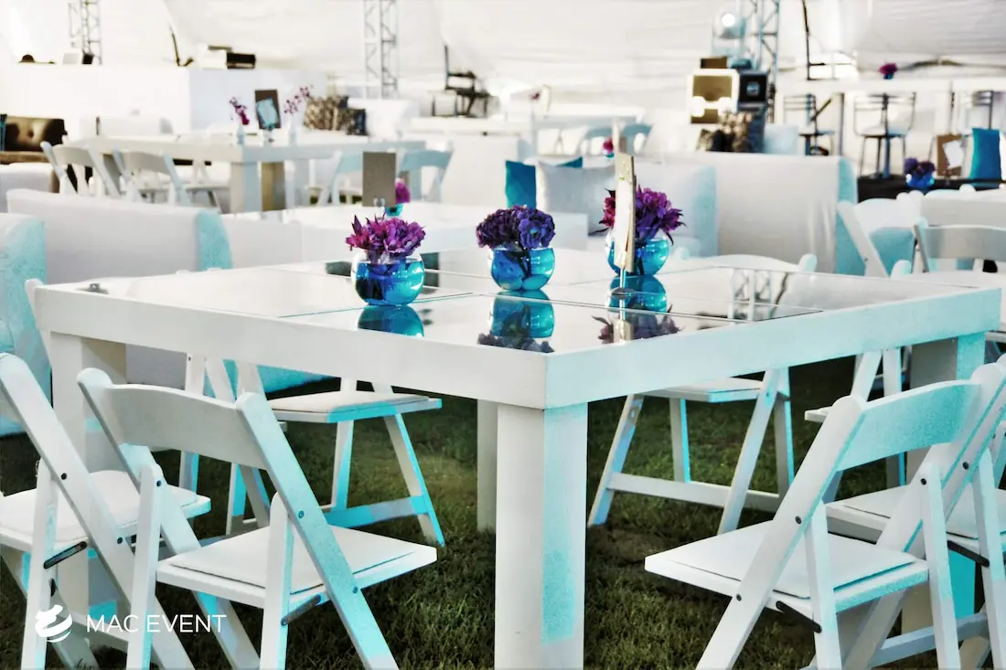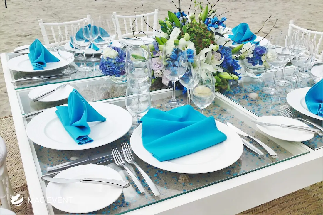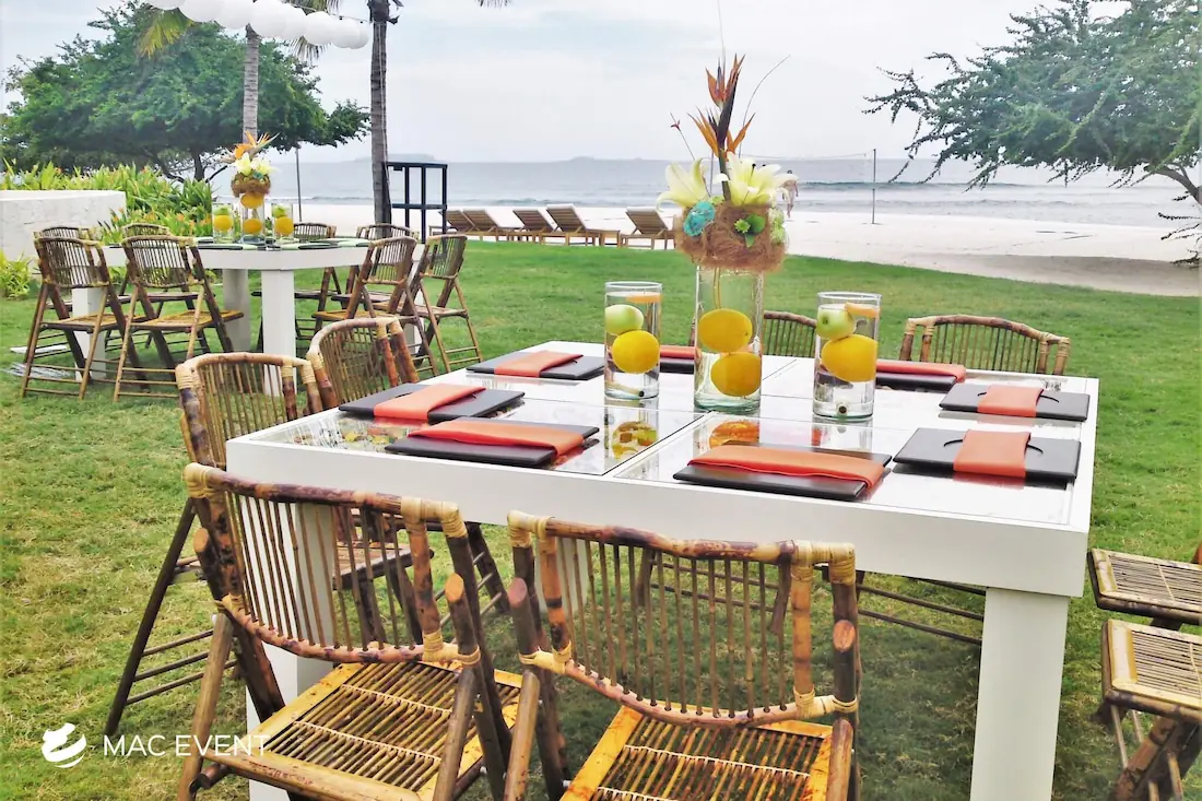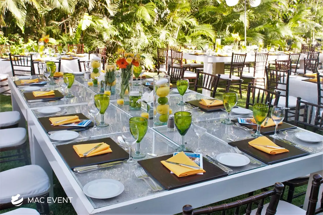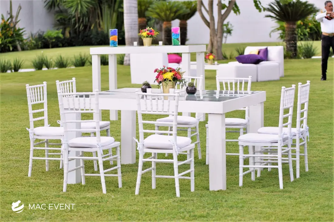 The wooden glass table combines natural elegance with a modern touch, making it perfect for weddings, parties, and corporate events in Bucerias. Its wooden frame adds warmth, while the glass top provides a sleek and sophisticated finish that complements any décor style. This event table rental works beautifully for dining areas, sweetheart setups, or display tables, creating a refined and inviting look. Renting wooden glass tables in Bucerias ensures a polished presentation with durability and style. For an event that blends rustic charm with contemporary design, the wooden glass table is an exceptional choice.