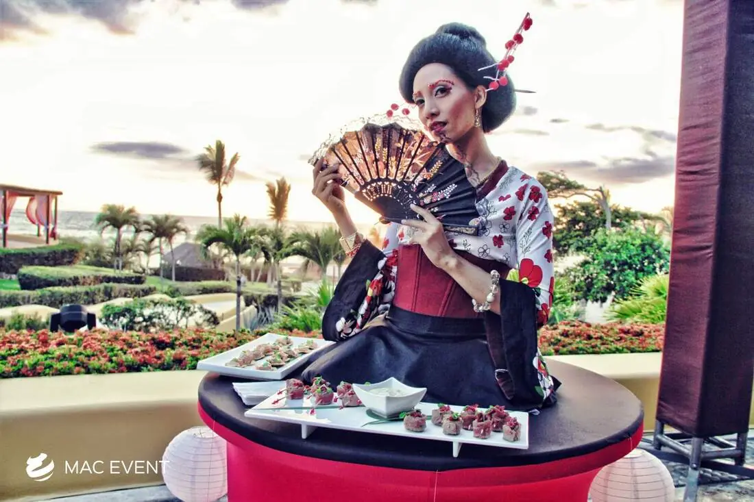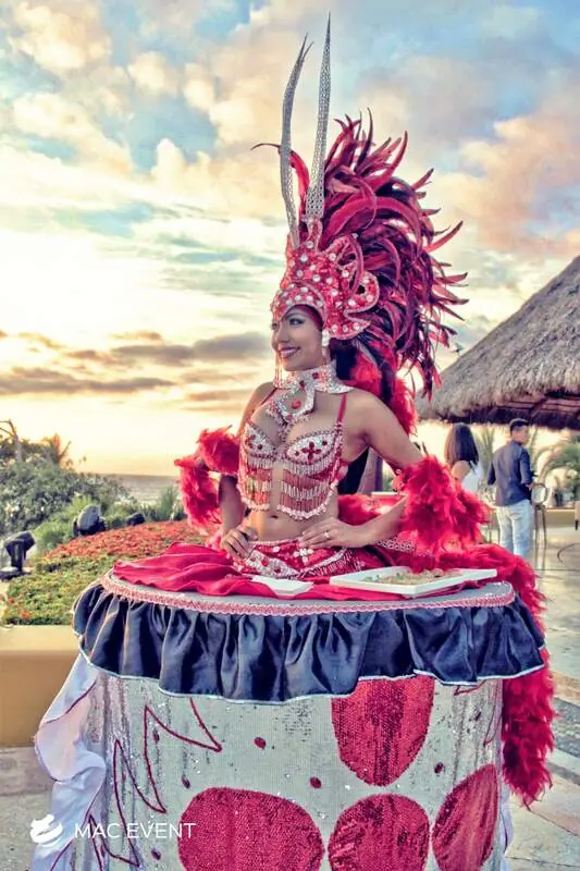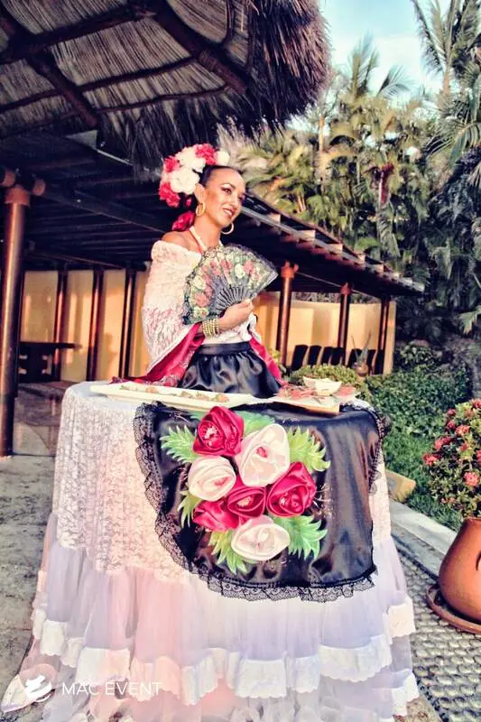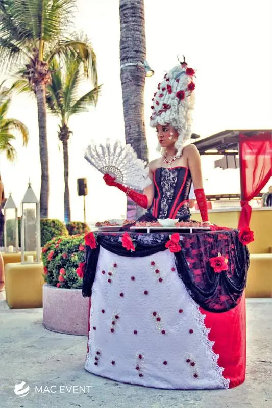 The strolling tables add creativity and elegance to weddings, parties, and corporate events in Bucerias. Performed by entertainers wearing beautifully designed costumes with built-in tables, this event entertainment rental offers a unique way to serve drinks, appetizers, or favors. The strolling tables move gracefully among guests, combining functionality with visual impact and interactive charm. Renting strolling tables in Bucerias ensures professional performers, stunning presentation, and seamless coordination with your event theme. For a stylish and unforgettable experience that delights guests, the strolling tables are a perfect addition to any celebration.